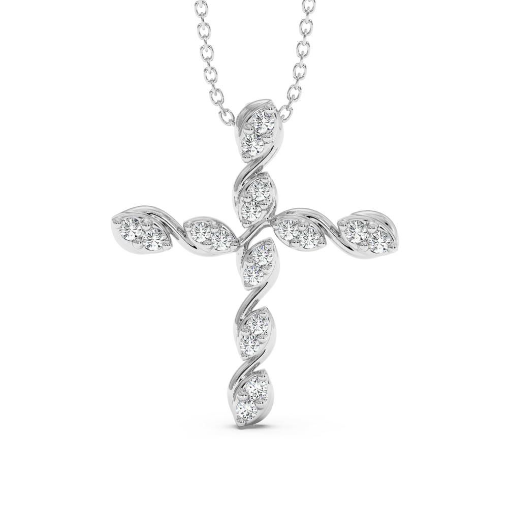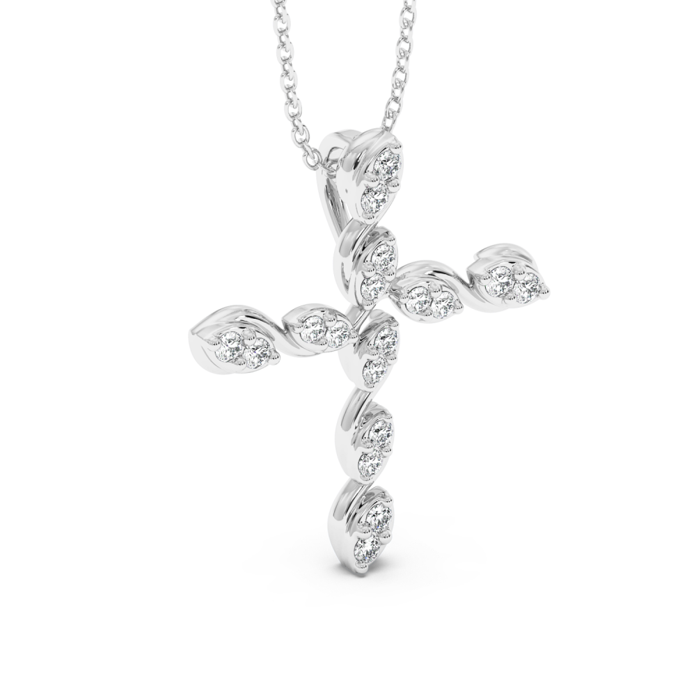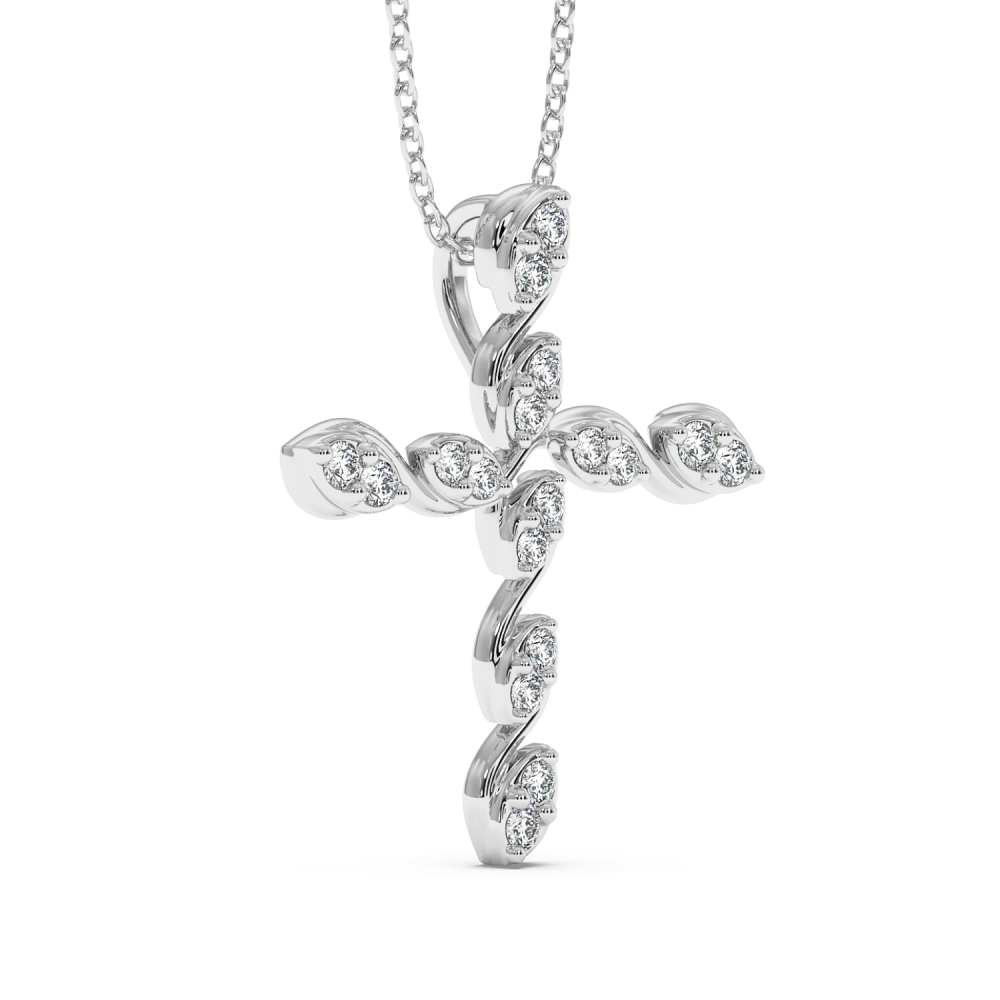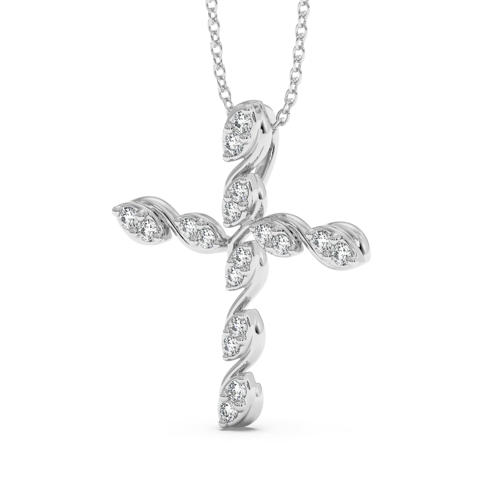 Pandantiv cruciulita din aur alb de 14 K, cu diamante de 0.34ct. Greutatea este de aproximativ 2.46 grame. Lungimea cruciulitei este de 2.47cm. Pandantivul se poate face pe comanda si din aur de 18K, galben sau rose. Gramajele si caratajele sunt aproximative. Putem modifica designul in functie de bugetul dumneavoastra.