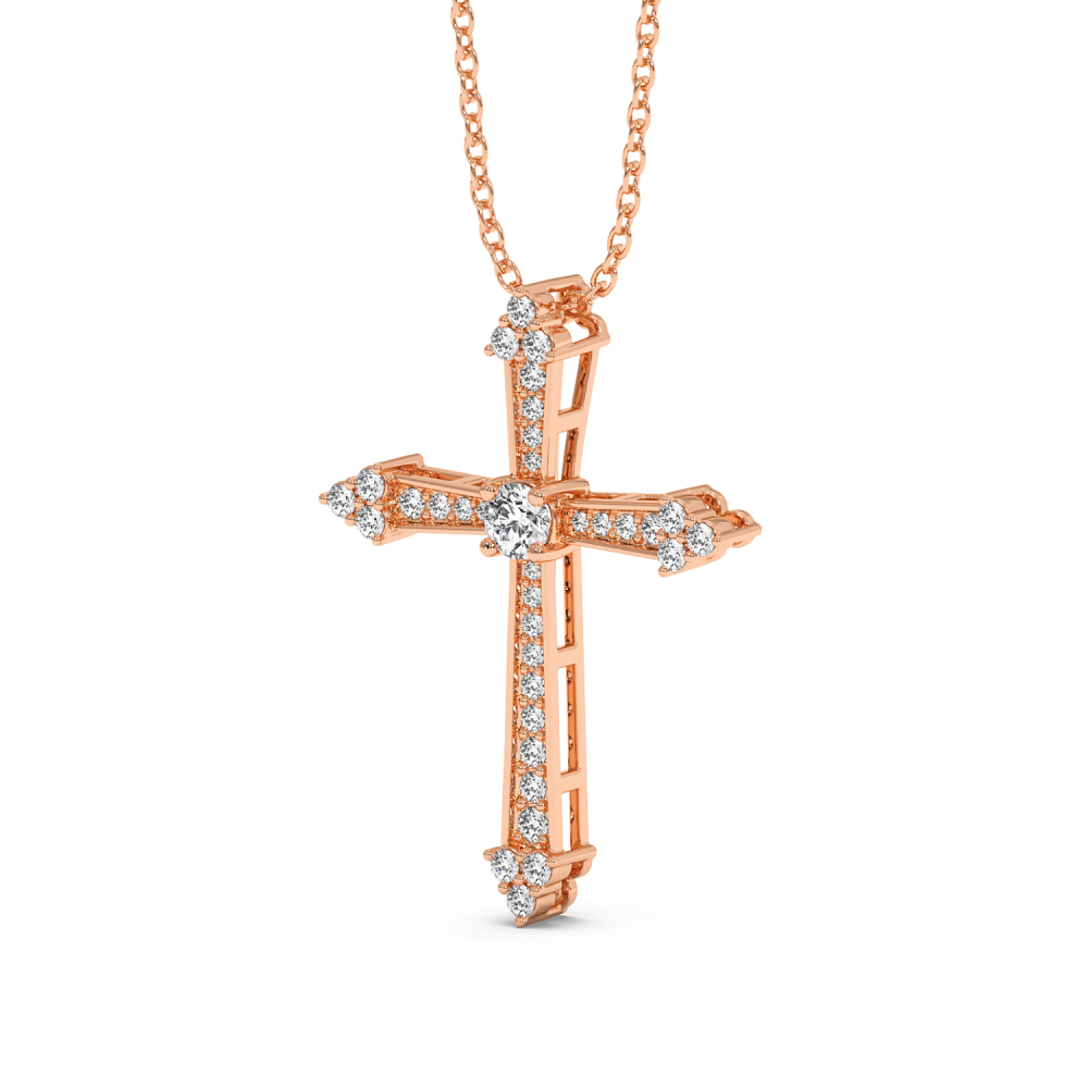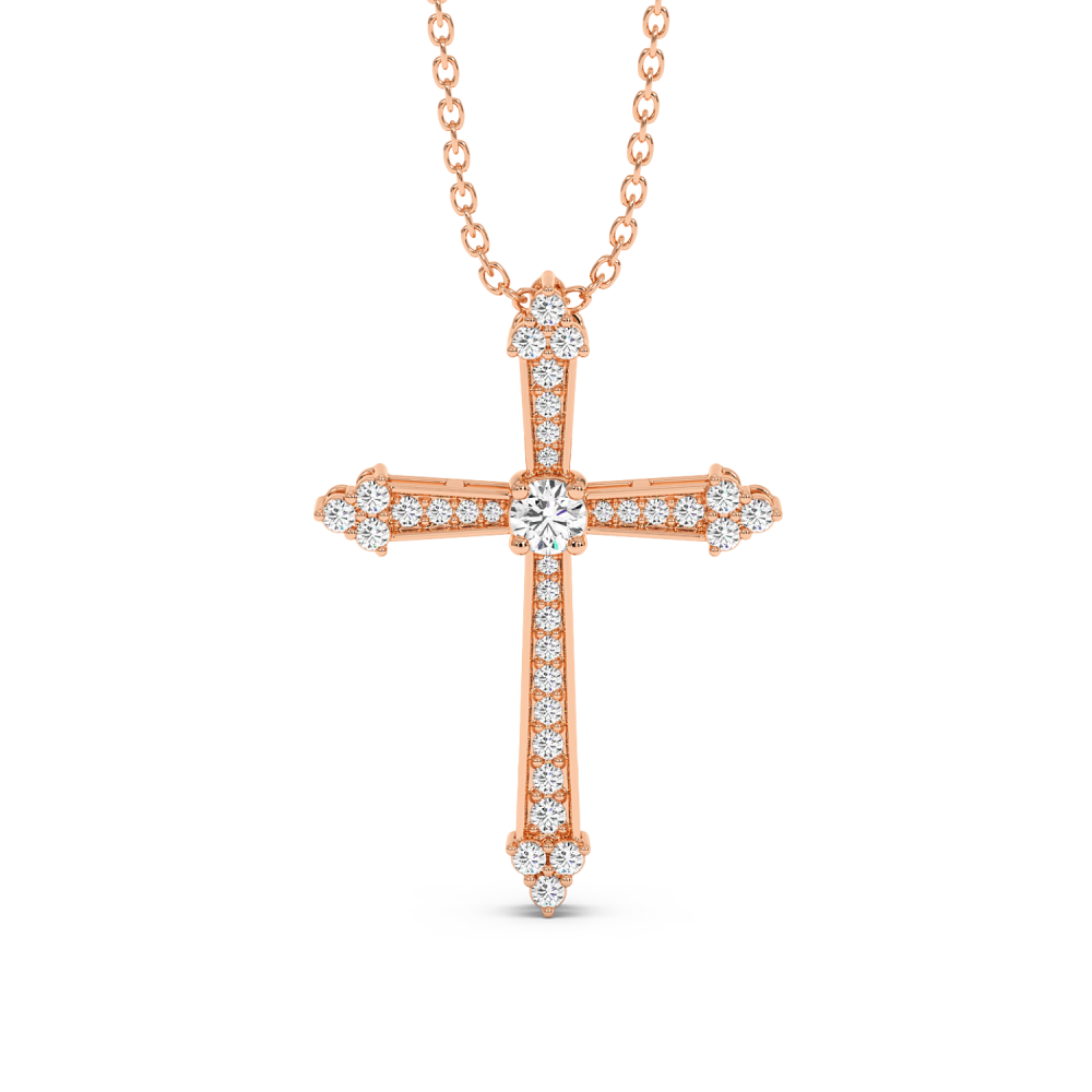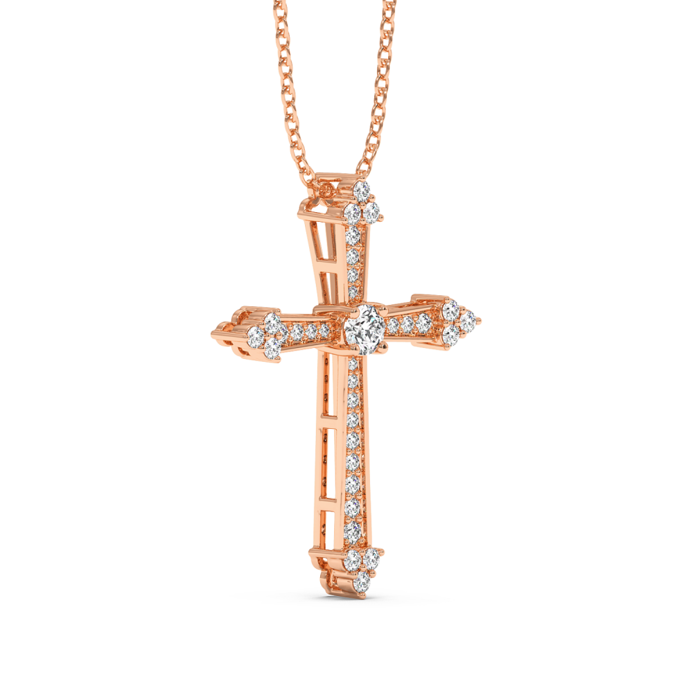 Pandantiv cruciulita din aur alb de 14 K, cu diamante de 0.35ct. Greutatea cruciulitei este de aproximativ 3 grame.