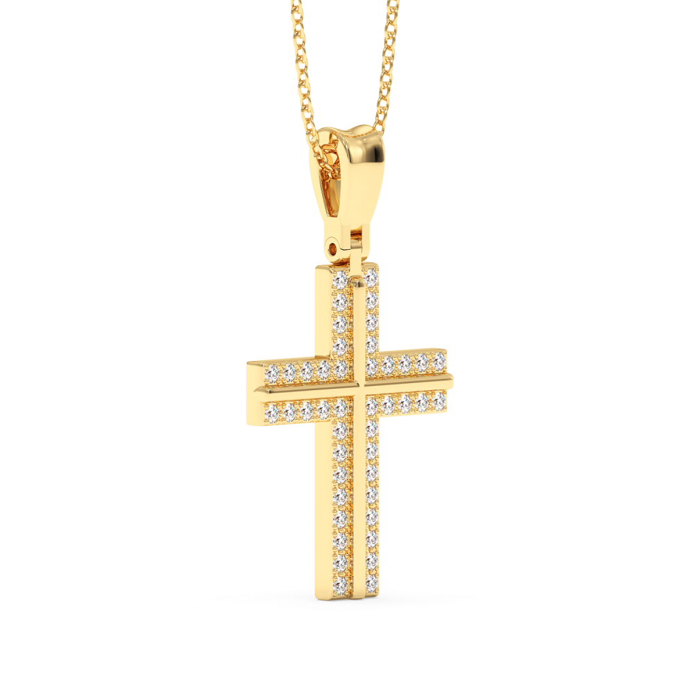 Pandantiv cruciulita din aur de 14 K, cu diamante de 0.37ct. Greutatea cruciulitei este de aproximativ 7 grame.