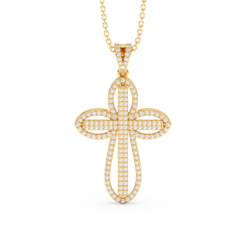 Pandantiv cruciulita din aur de 14 K, cu diamante de 0.39ct. Greutatea cruciulitei este de aproximativ 3.10 grame. Accesati "SPECIFICATII" pentru mai multe detalii despre acest produs.