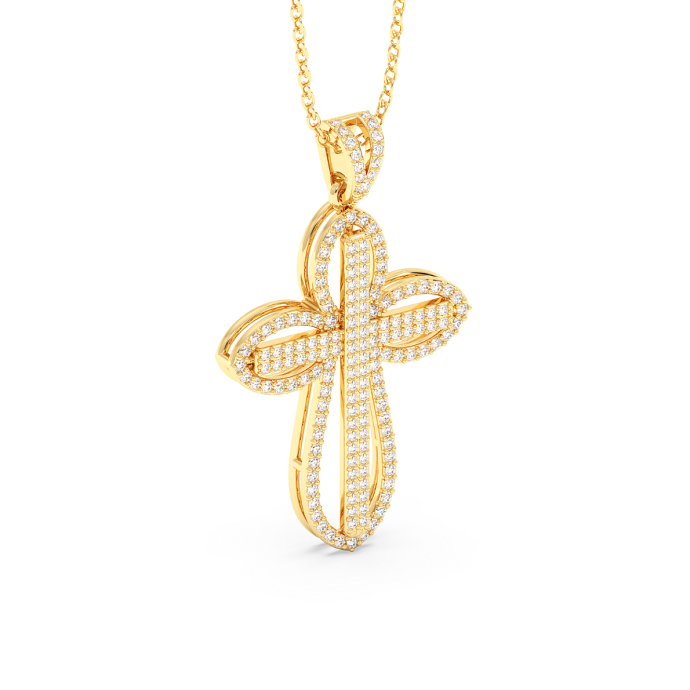 Pandantiv cruciulita din aur de 14 K, cu diamante de 0.39ct. Greutatea cruciulitei este de aproximativ 3.10 grame. Accesati "SPECIFICATII" pentru mai multe detalii despre acest produs.