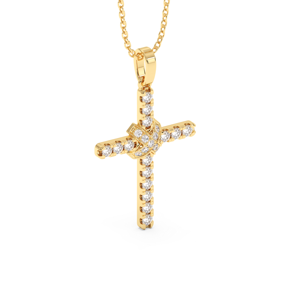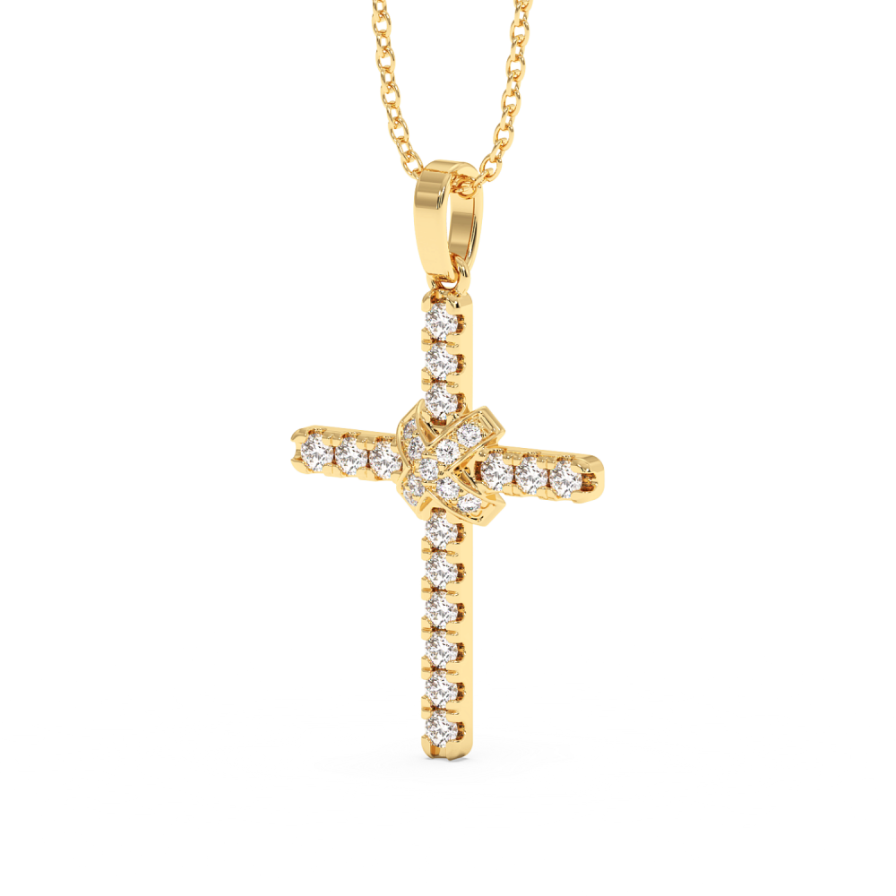 Pandantiv cruciulita din aur de 14 K, cu diamante de 0.40ct. Greutatea cruciulitei este de aproximativ 1.30 grame. Accesati "SPECIFICATII" pentru mai multe detalii despre acest produs.