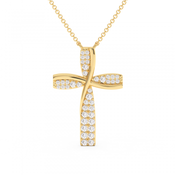 Pandantiv cruciulita din aur de 14 K, cu diamante de 0.40ct. Greutatea cruciulitei este de aproximativ 2.20 grame. Accesati  "SPECIFICATII" pentru mai multe detalii despre acest produs.