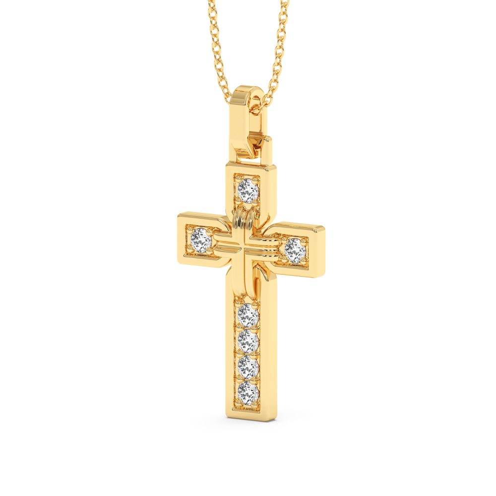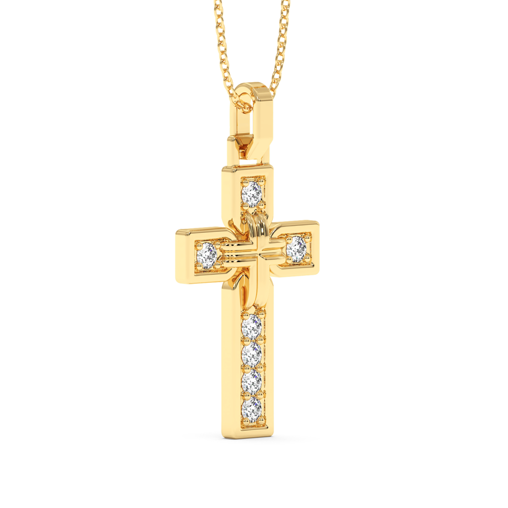 Pandantiv cruciulita din aur de 14 K, cu diamante de 0.42ct. Greutatea cruciulitei este de aproximativ 5.70 grame.