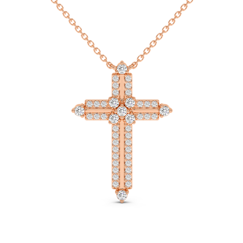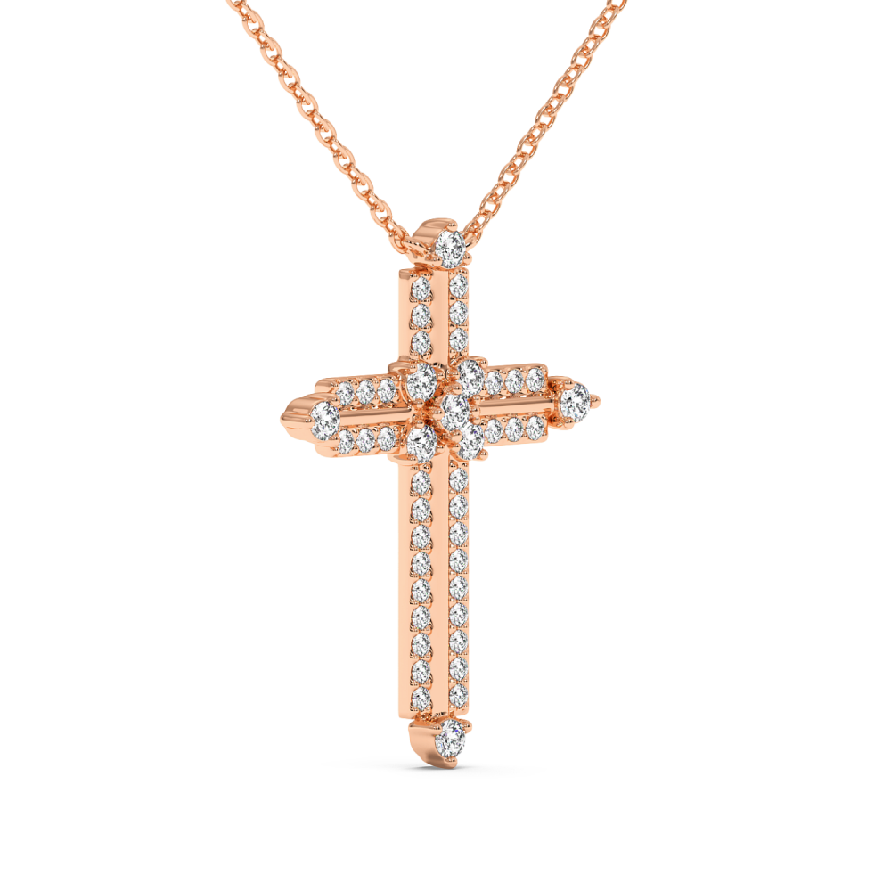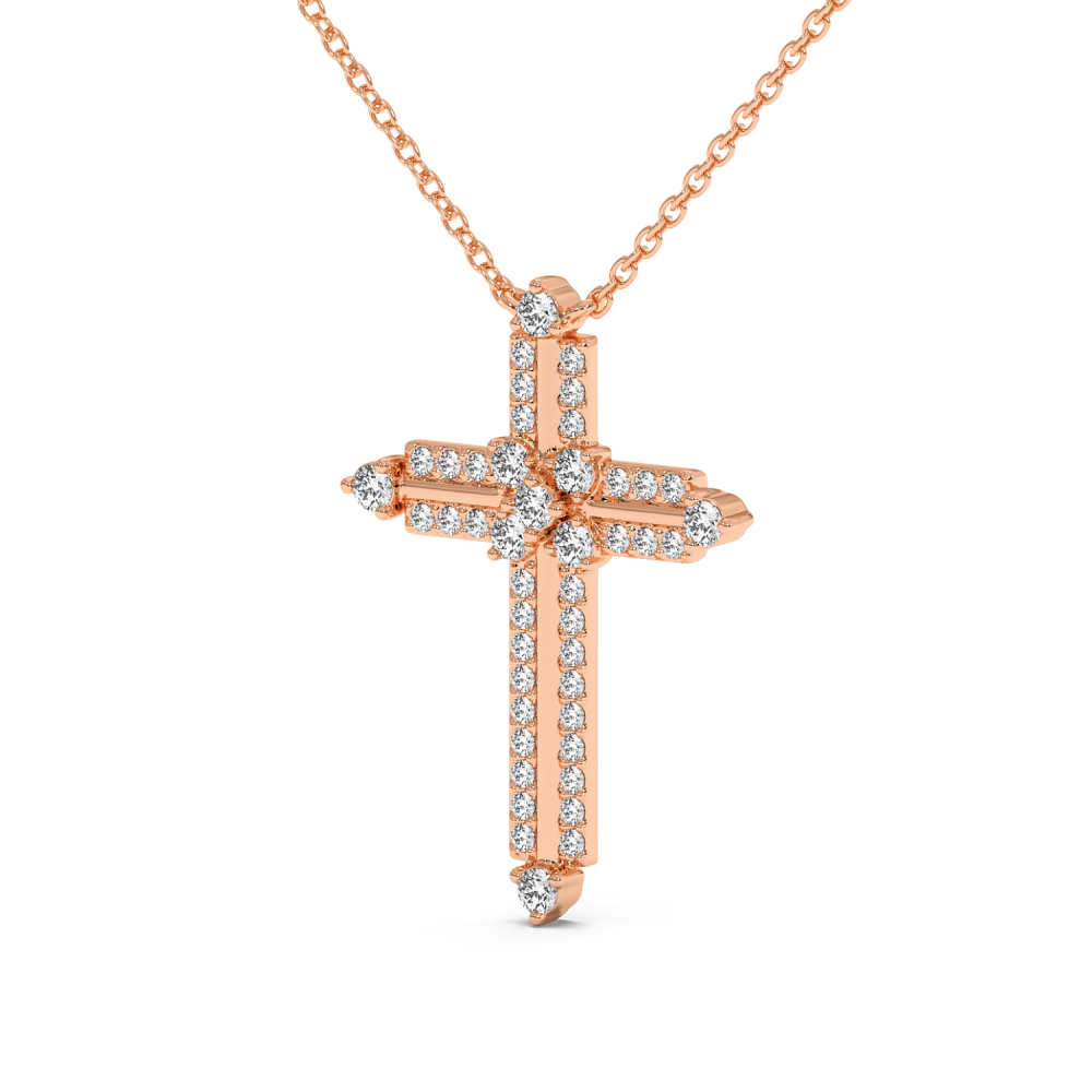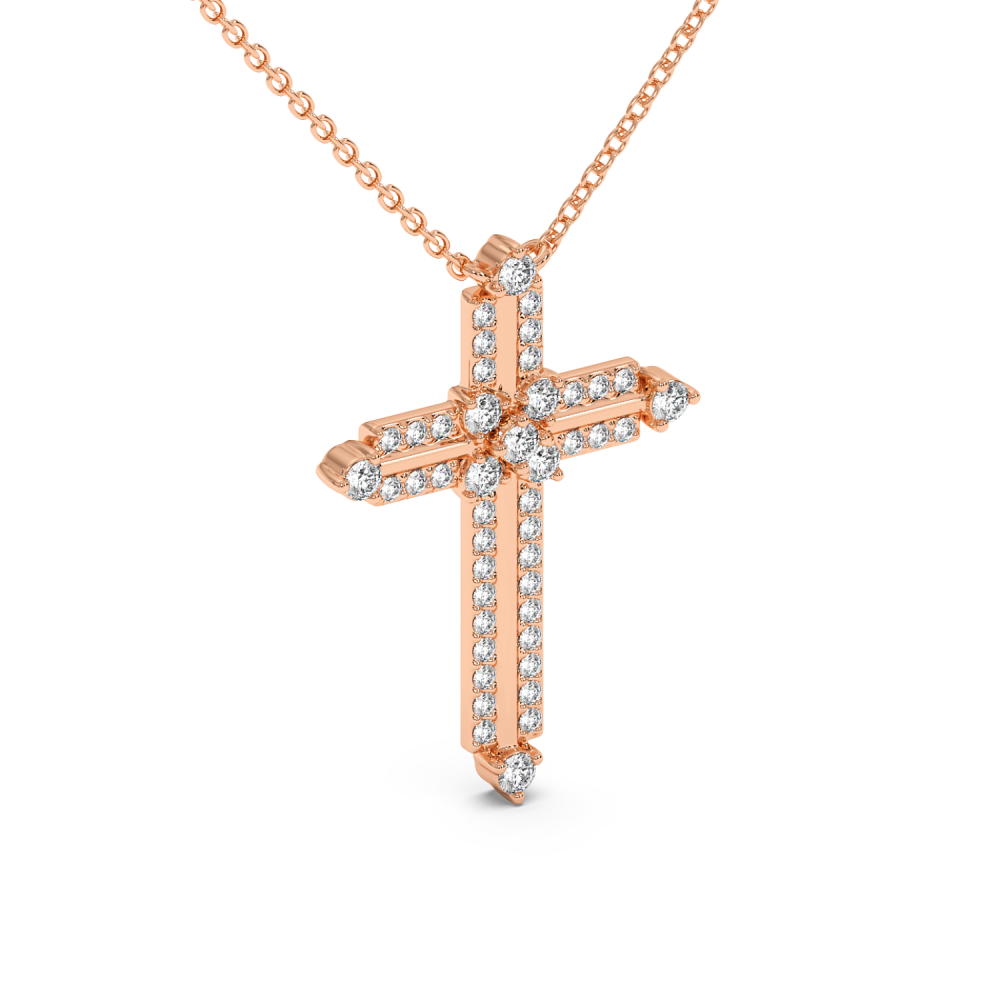 Pandantiv cruciulita din aur alb de 14 K, cu diamante de 0.44 ct. Greutatea cruciulitei este de 3.7 grame.