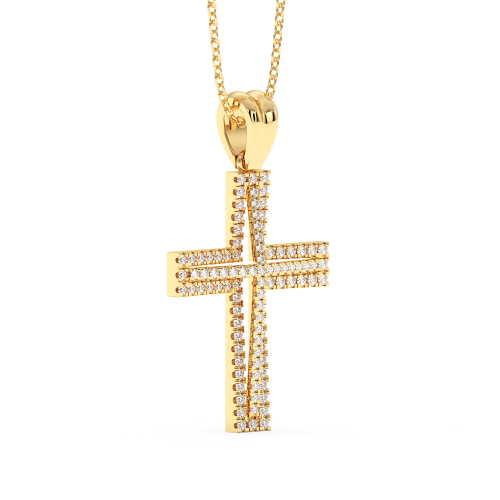 Pandantiv cruciulita din aur de 14 K, cu diamante de 0.46ct. Greutatea cruciulitei este de aproximativ 2.30 grame.