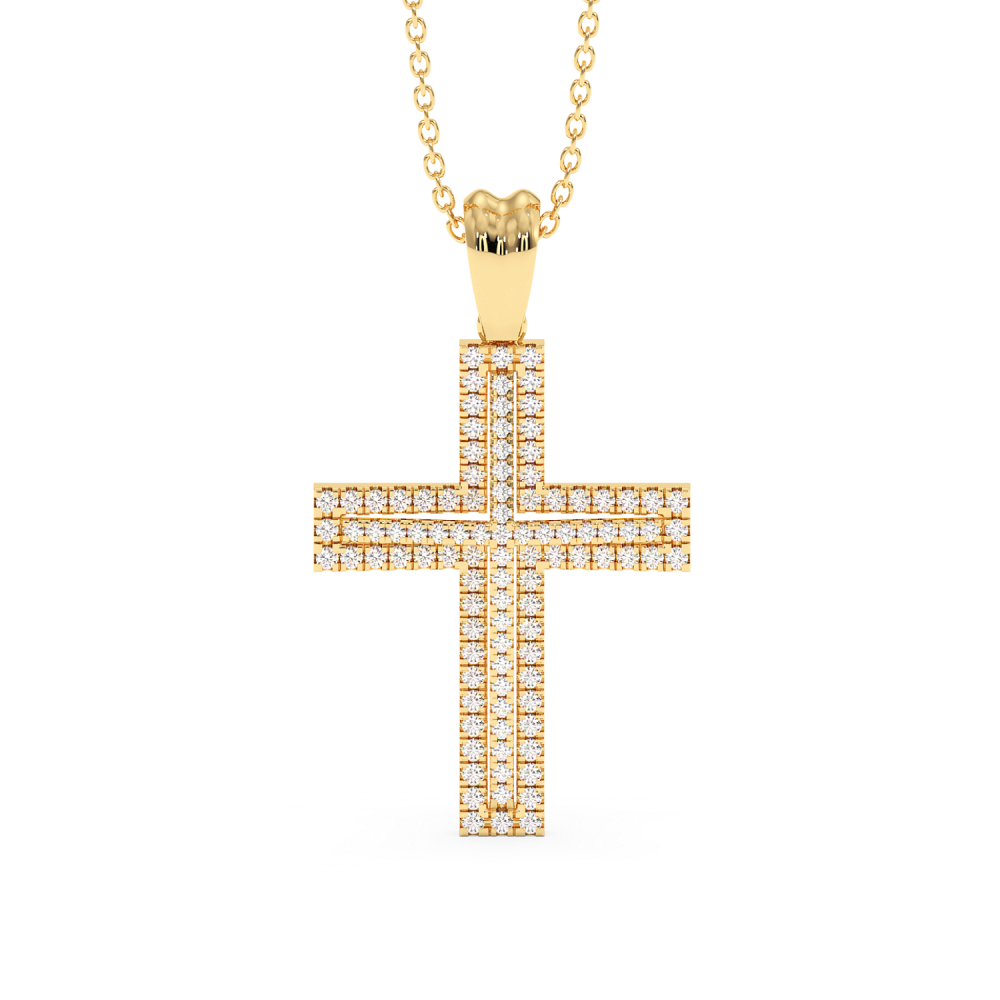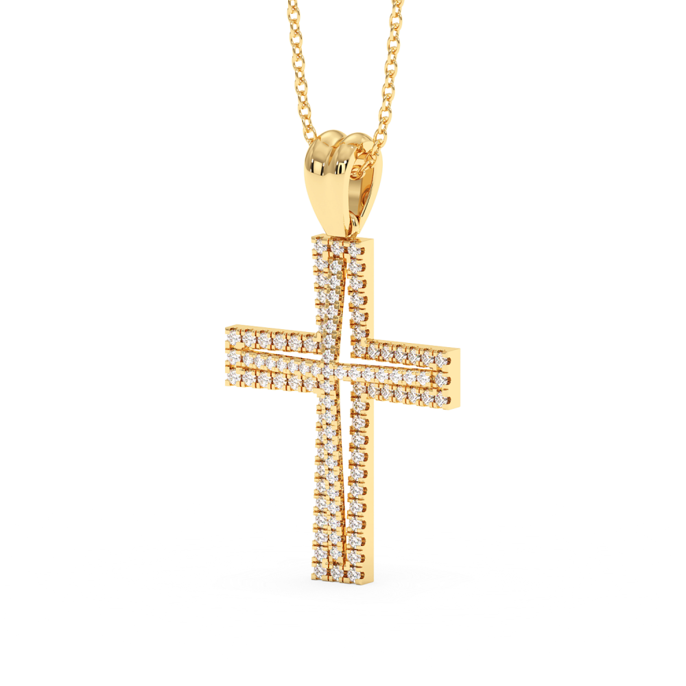 Pandantiv cruciulita din aur de 14 K, cu diamante de 0.46ct. Greutatea cruciulitei este de aproximativ 2.30 grame. Accesati  "SPECIFICATII" pentru mai multe detalii despre acest produs.