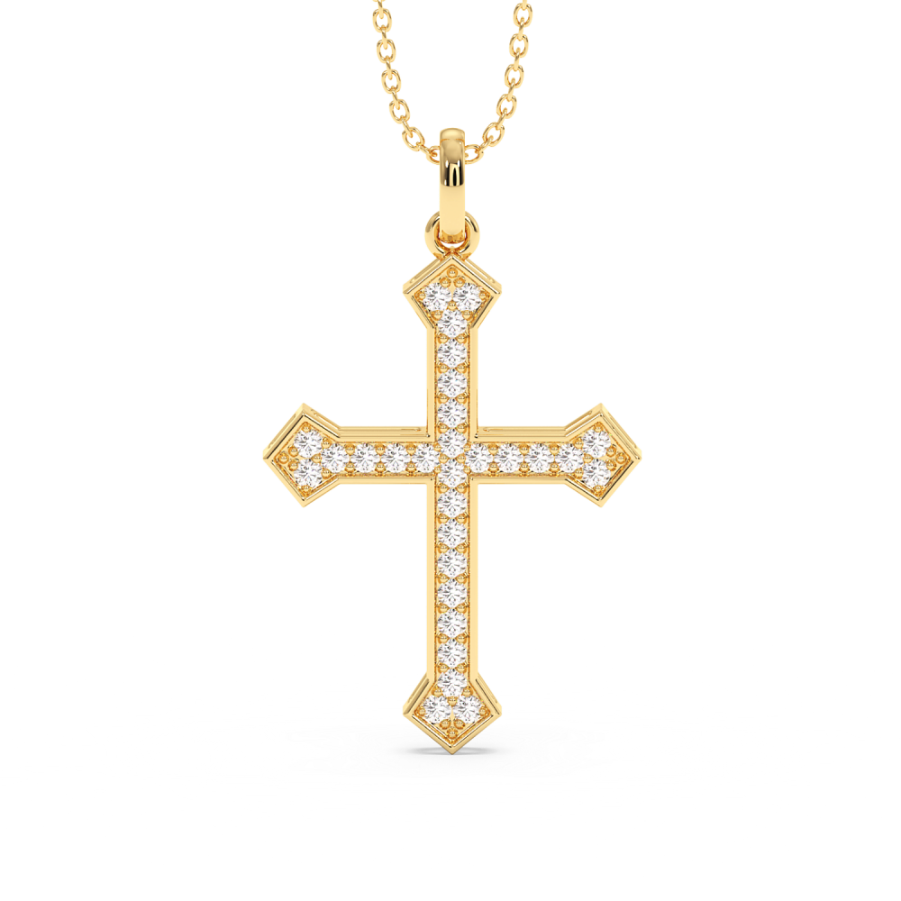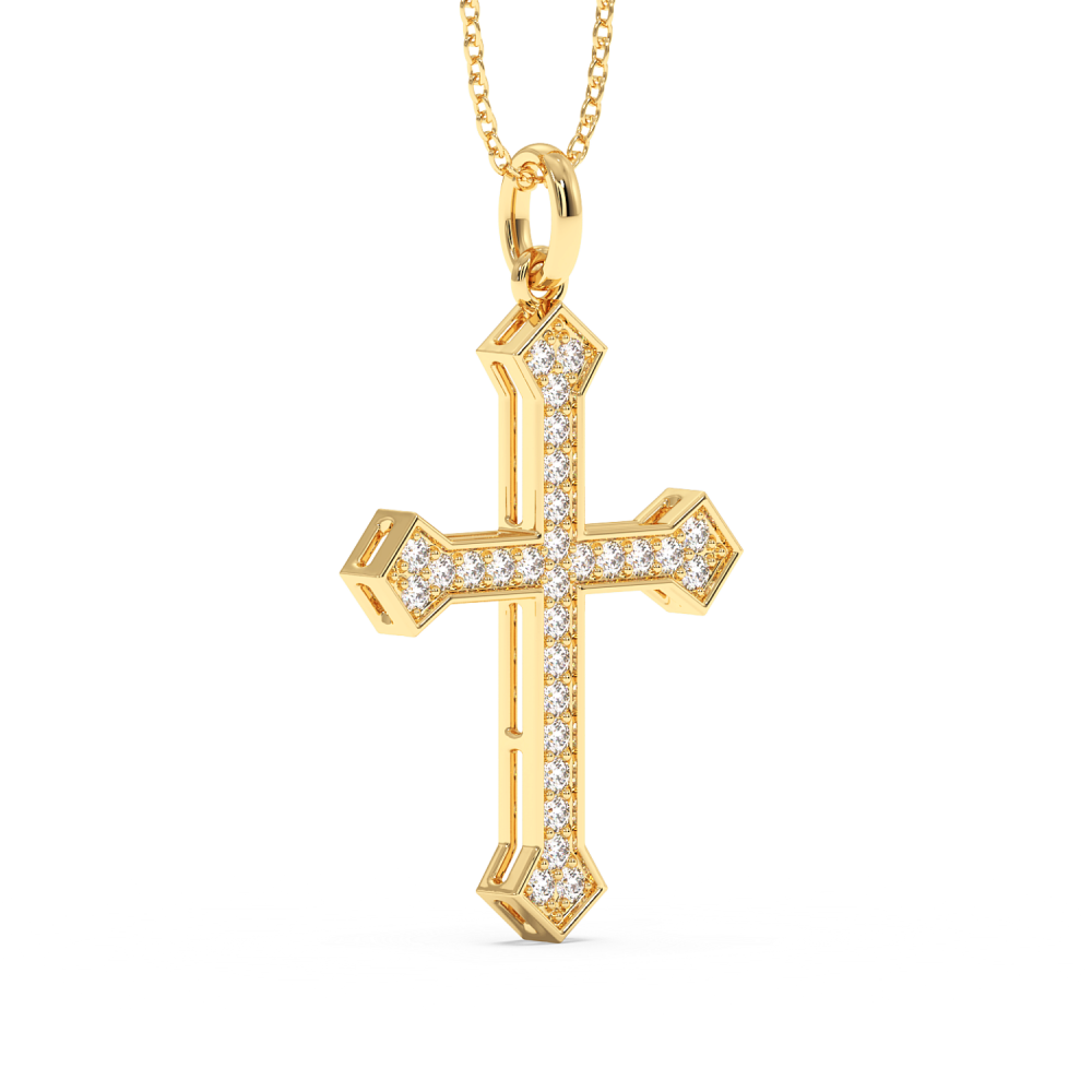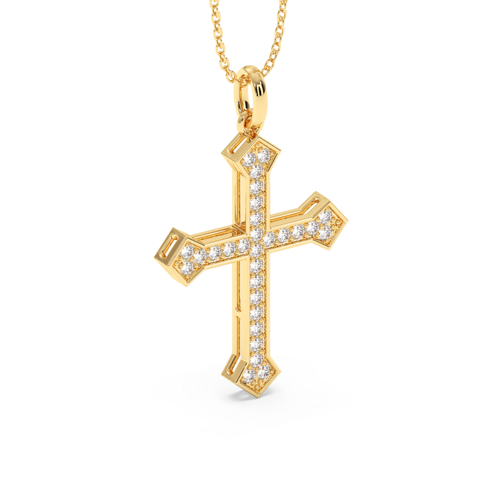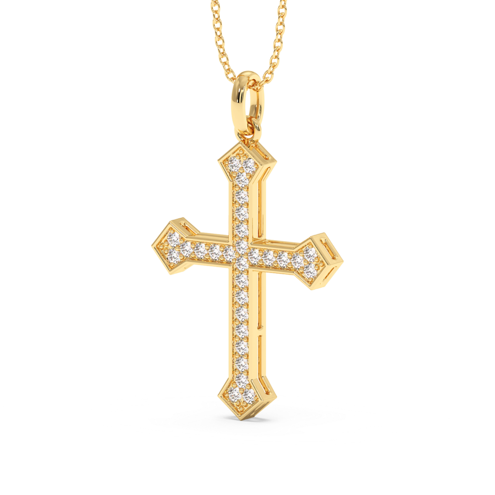 Pandantiv cruciulita din aur de 14 K, cu diamante de 0.48ct. Greutatea cruciulitei este de aproximativ 2.40 grame.