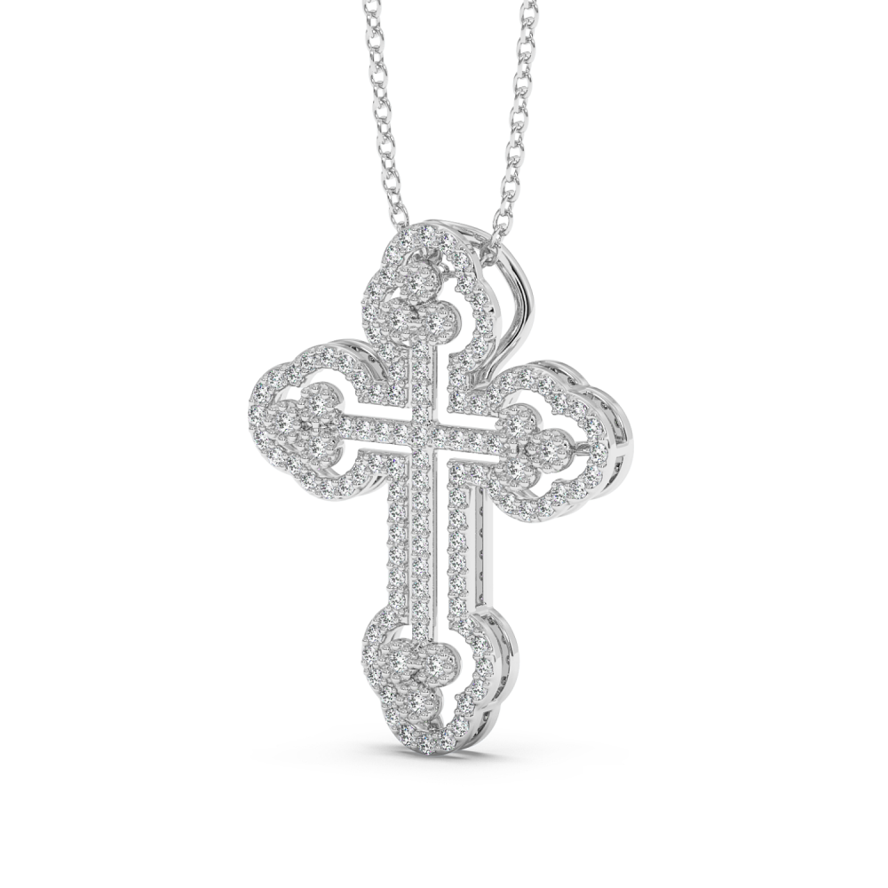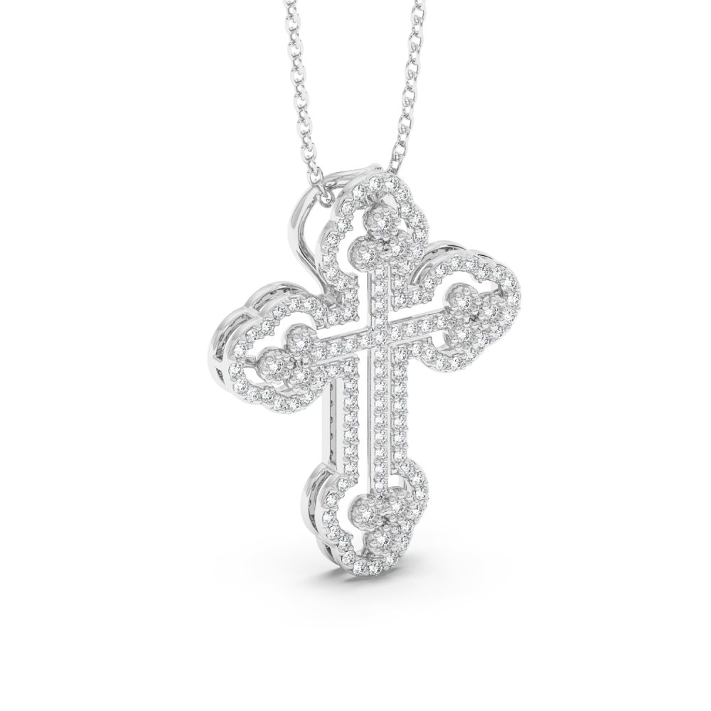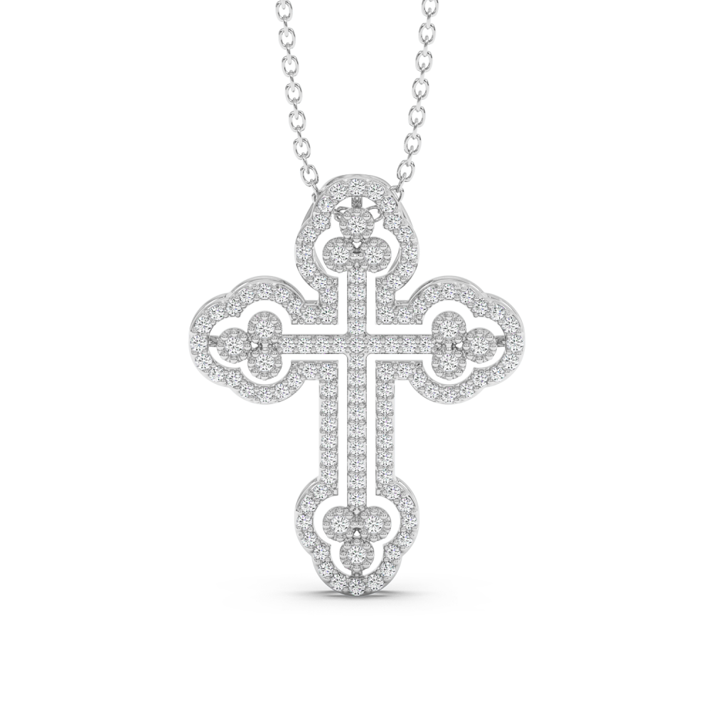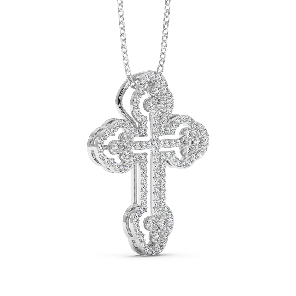 Pandantiv cruciulita din aur alb de 14 K, cu diamante de 0.50ct. Greutatea este de aproximativ 3.13 grame. Lungimea cruciulitei este de 2.56cm. Pandantivul se poate face pe comanda si din aur de 18K, galben sau rose. Gramajele si caratajele sunt aproximative. Putem modifica designul in functie de bugetul dumneavoastra.