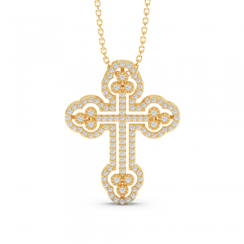 Pandantiv cruciulita din aur alb de 14 K, cu diamante de 0.50ct. Greutatea este de aproximativ 3.13 grame. Lungimea cruciulitei este de 2.56cm. Pandantivul se poate face pe comanda si din aur de 18K, galben sau rose. Gramajele si caratajele sunt aproximative. Putem modifica designul in functie...
