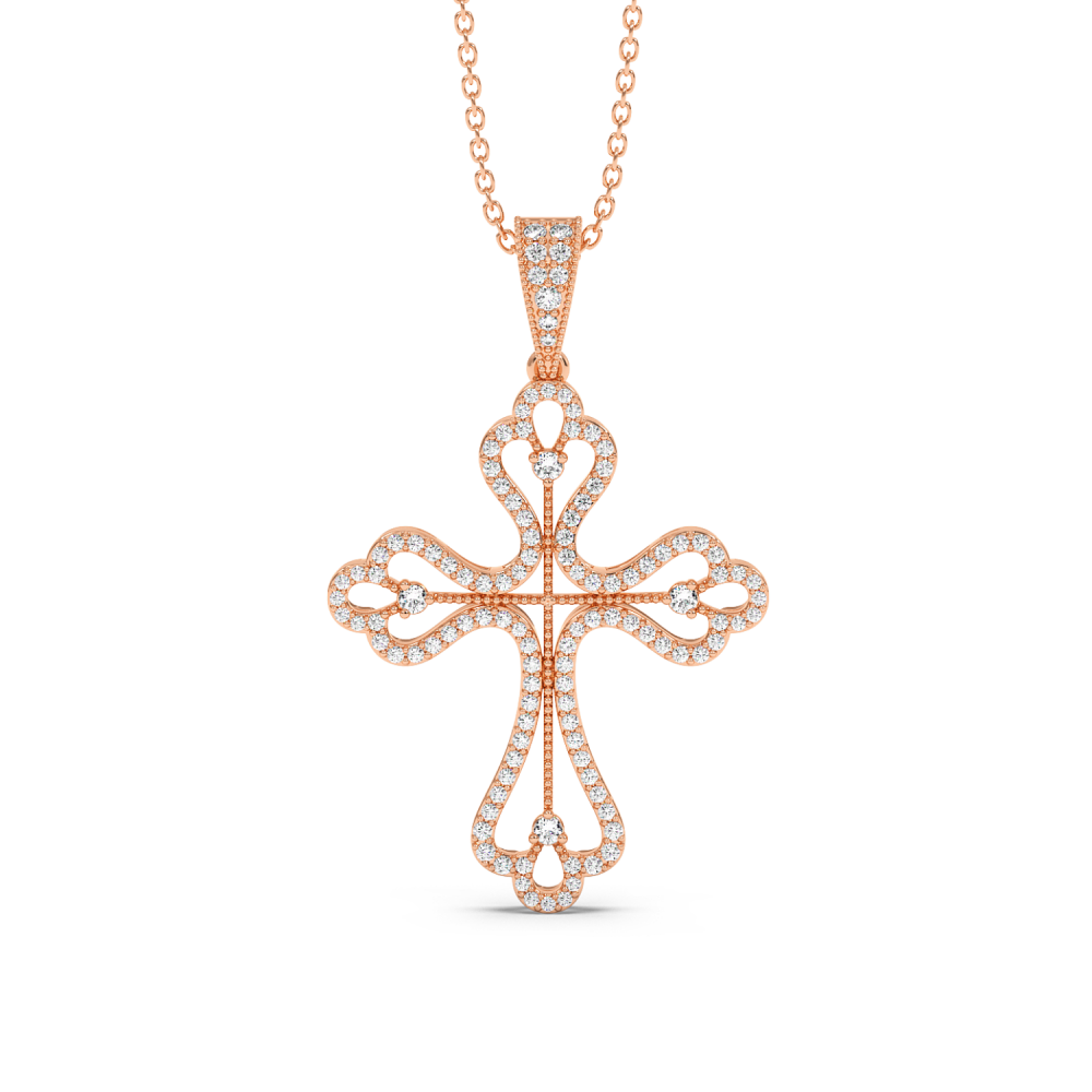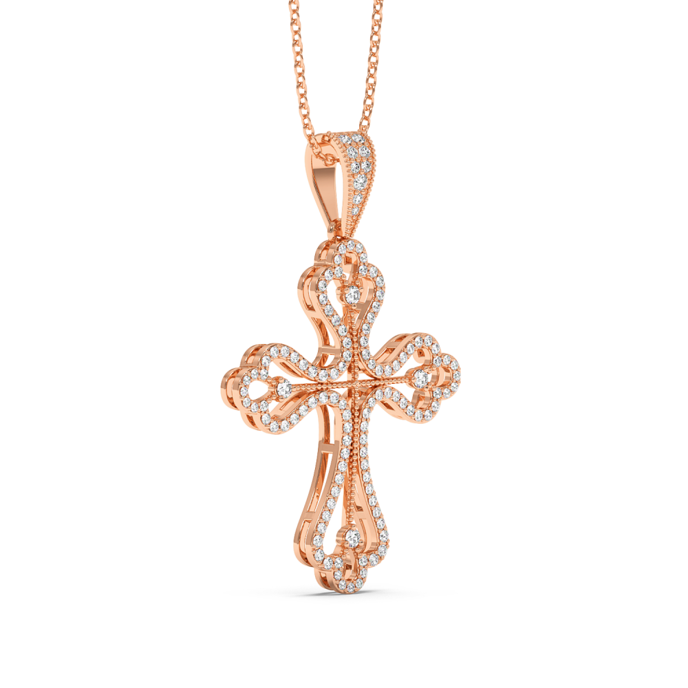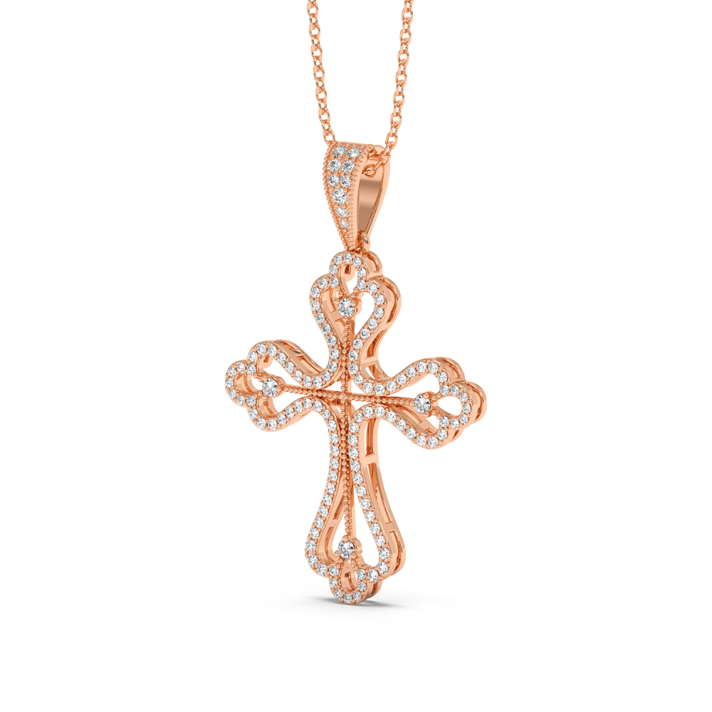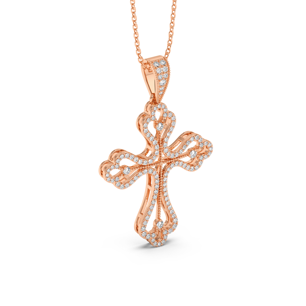 Pandantiv cruciulita din aur de 14 K, cu diamante de 0.53 ct. Greutatea cruciulitei este de aproximativ 4,99 grame.