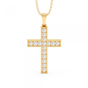 Pandantiv cruciulita din aur de 14 K, cu diamante de 0.56ct. Greutatea cruciulitei este de aproximativ 2 grame. Accesati "SPECIFICATII" pentru mai multe detalii despre acest produs.