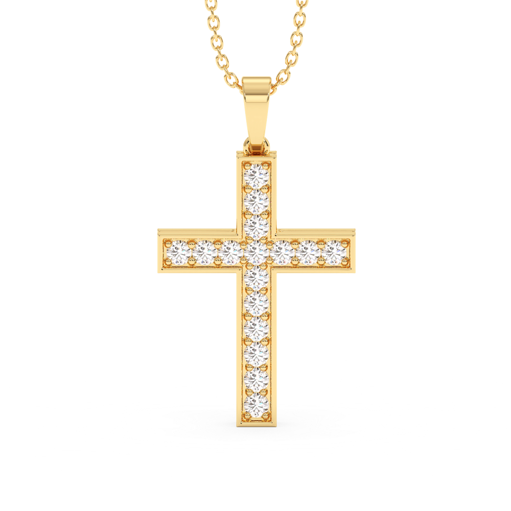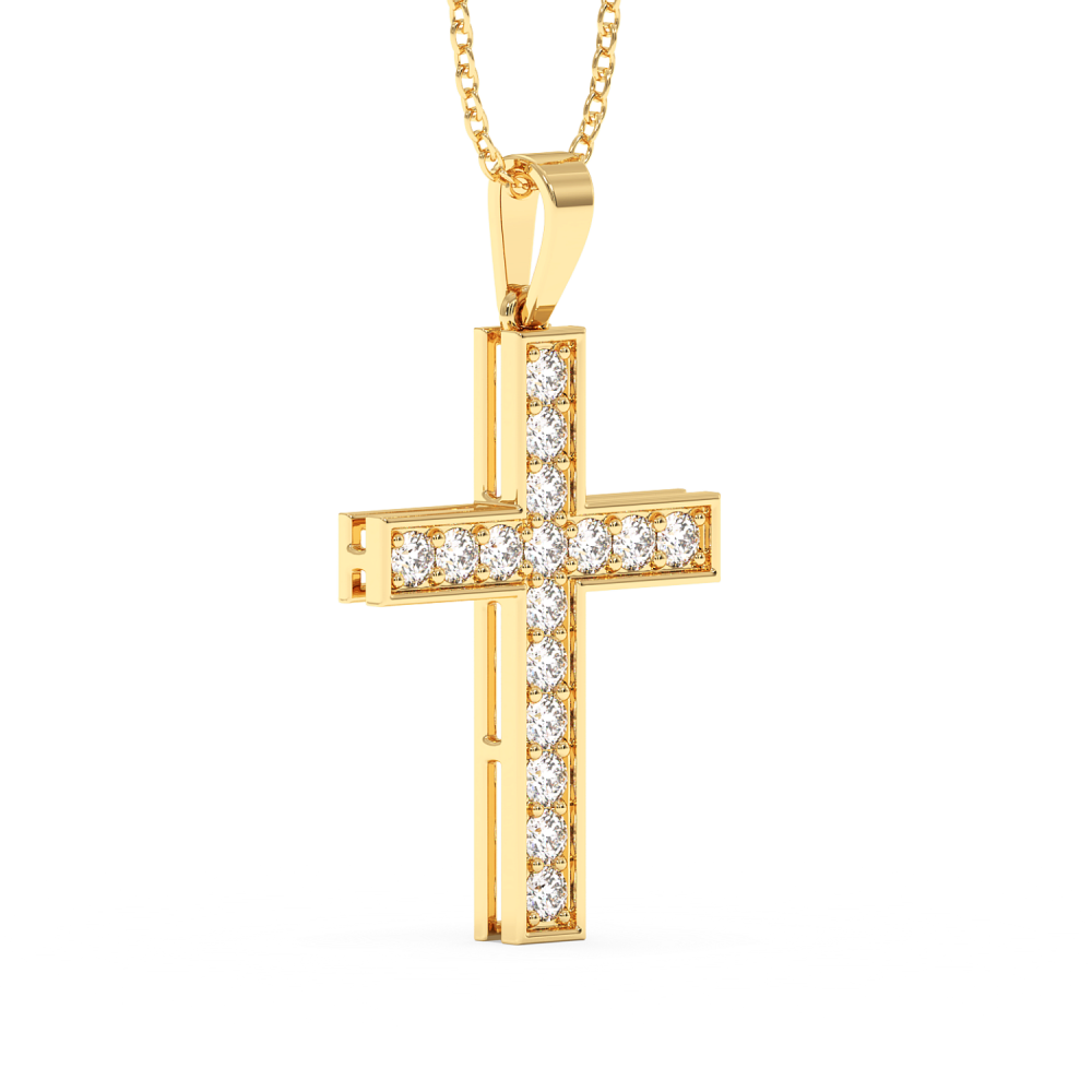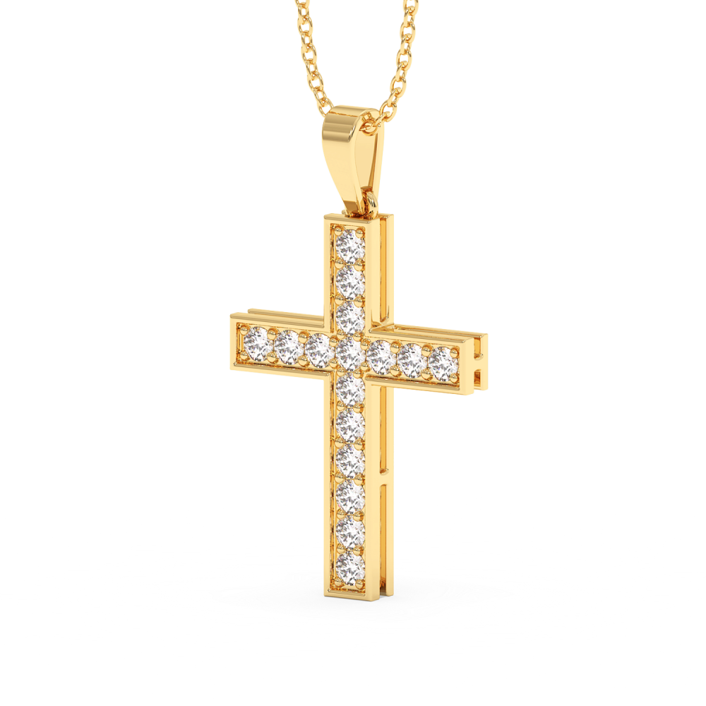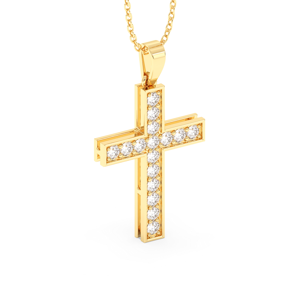 Pandantiv cruciulita din aur de 14 K, cu diamante de 0.56ct. Greutatea cruciulitei este de aproximativ 2 grame.