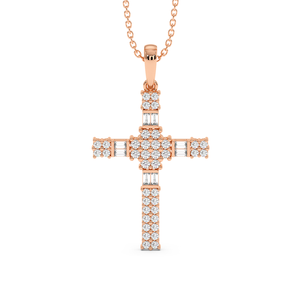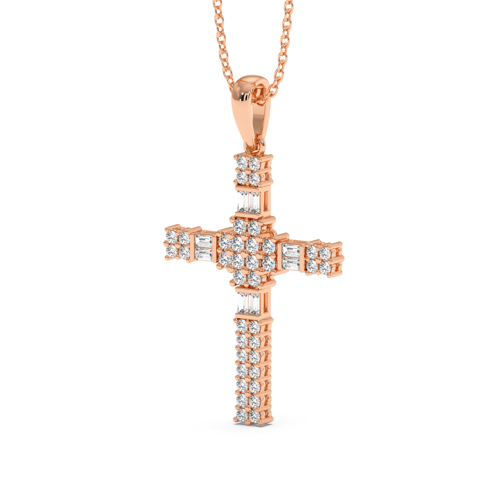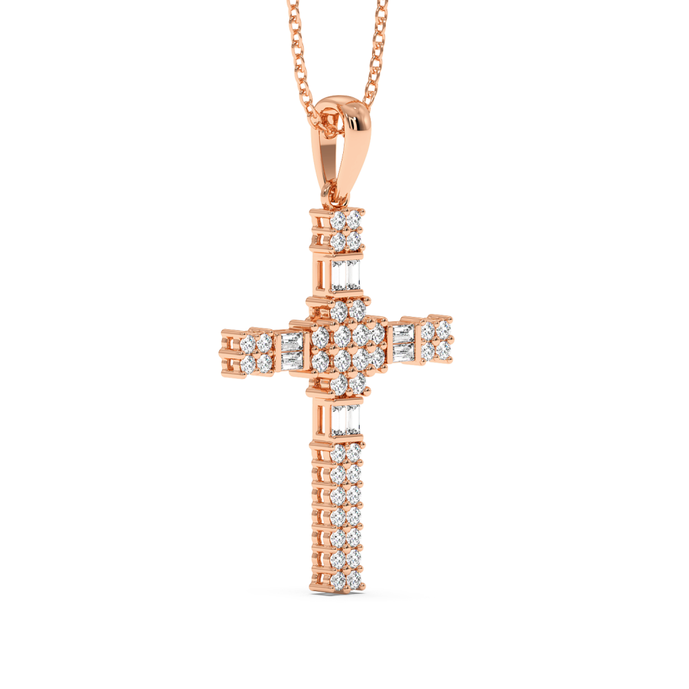 Pandantiv cruciulita din aur alb de 14 K, cu diamante de 0.56ct. Greutatea cruciulitei este de aproximativ 4 grame.