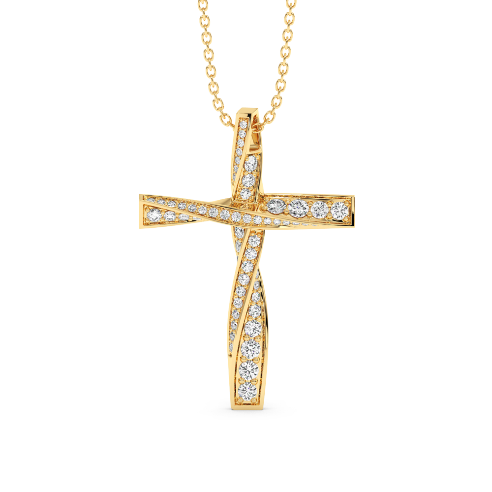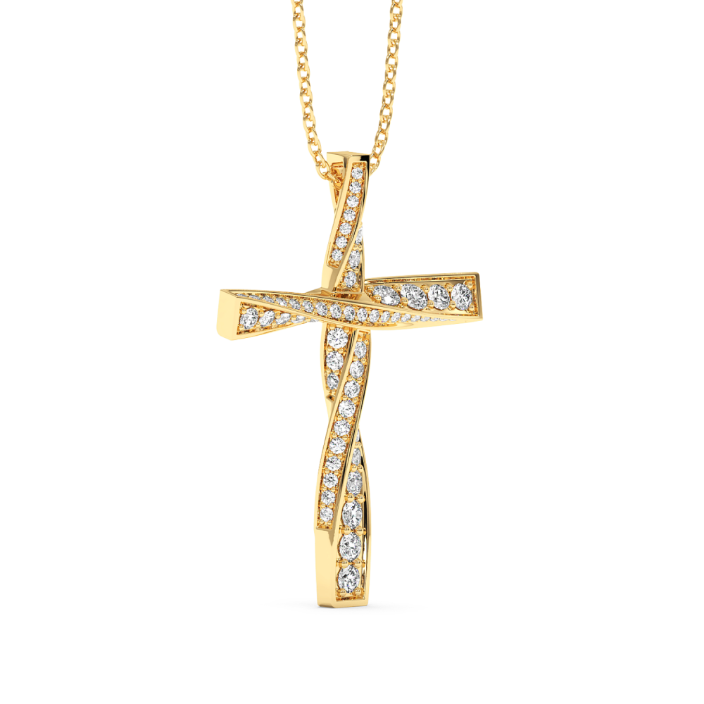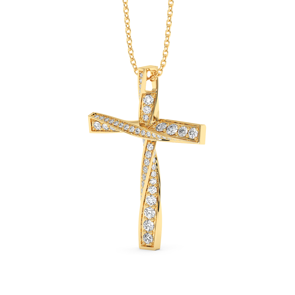 Pandantiv cruciulita din aur de 14 K, cu diamante de 0.57 ct. Greutatea cruciulitei este de aproximativ 4,30 grame.