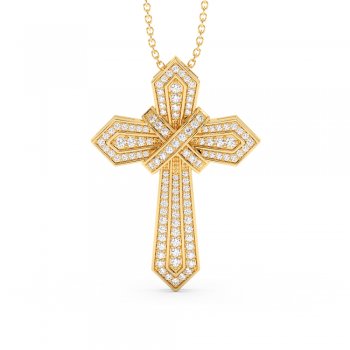 Pandantiv cruciulita din aur de 14 K, cu diamante de 0.58ct. Greutatea cruciulitei este de aproximativ 5.90 grame. Accesati "SPECIFICATII" pentru mai multe detalii despre acest produs.
