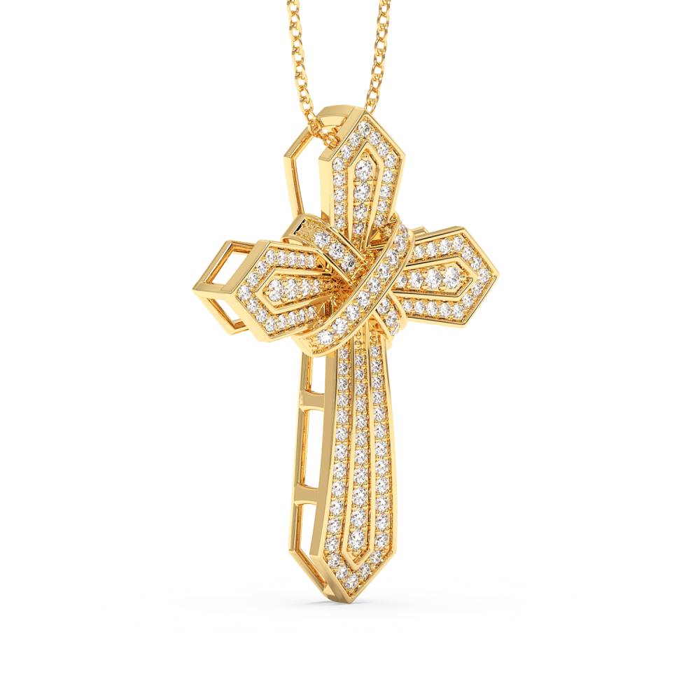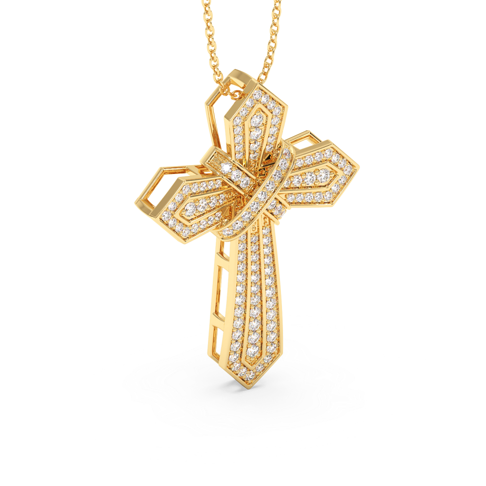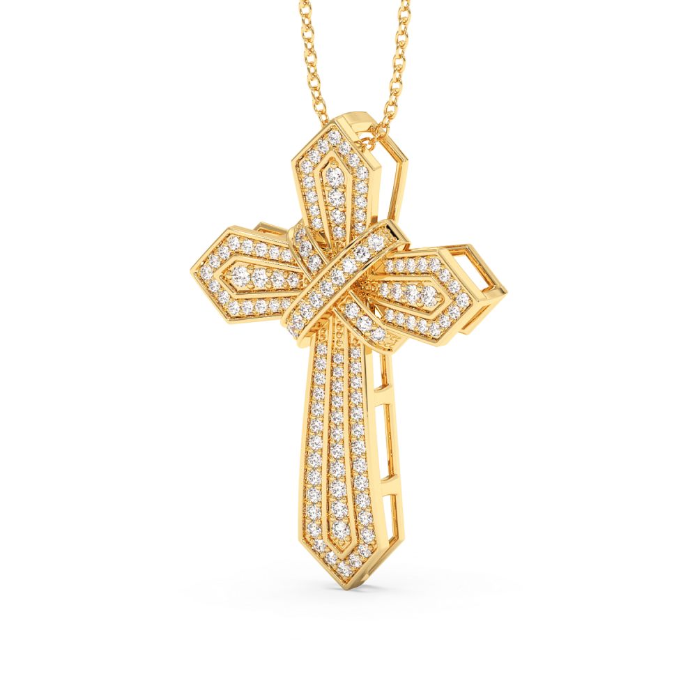 Pandantiv cruciulita din aur de 14 K, cu diamante de 0.58ct. Greutatea cruciulitei este de aproximativ 5.90 grame.