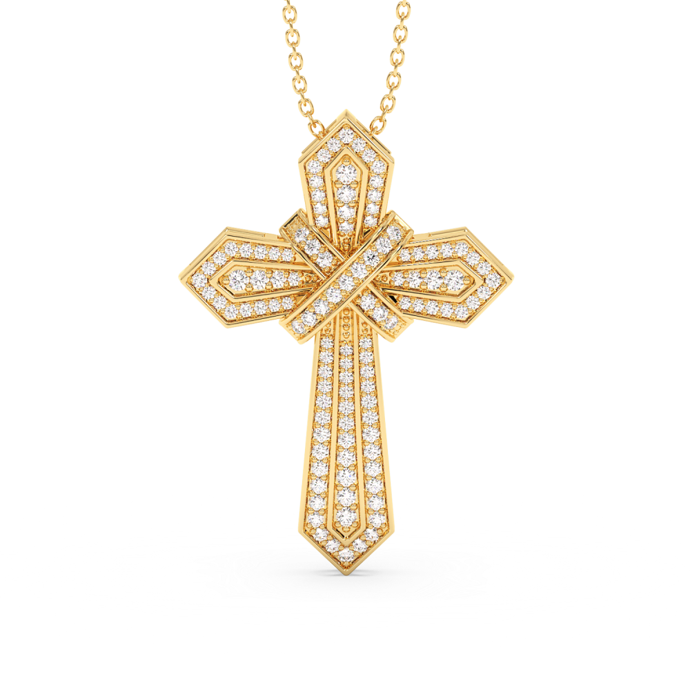 Pandantiv cruciulita din aur de 14 K, cu diamante de 0.58ct. Greutatea cruciulitei este de aproximativ 5.90 grame. Accesati "SPECIFICATII" pentru mai multe detalii despre acest produs.