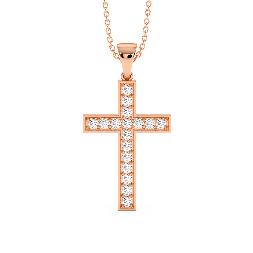 Pandantiv cruciulita din aur de 14 K, cu diamante de 0.59ct. Greutatea cruciulitei este de aproximativ 2.70 grame. Accesati "SPECIFICATII" pentru mai multe detalii despre acest produs.