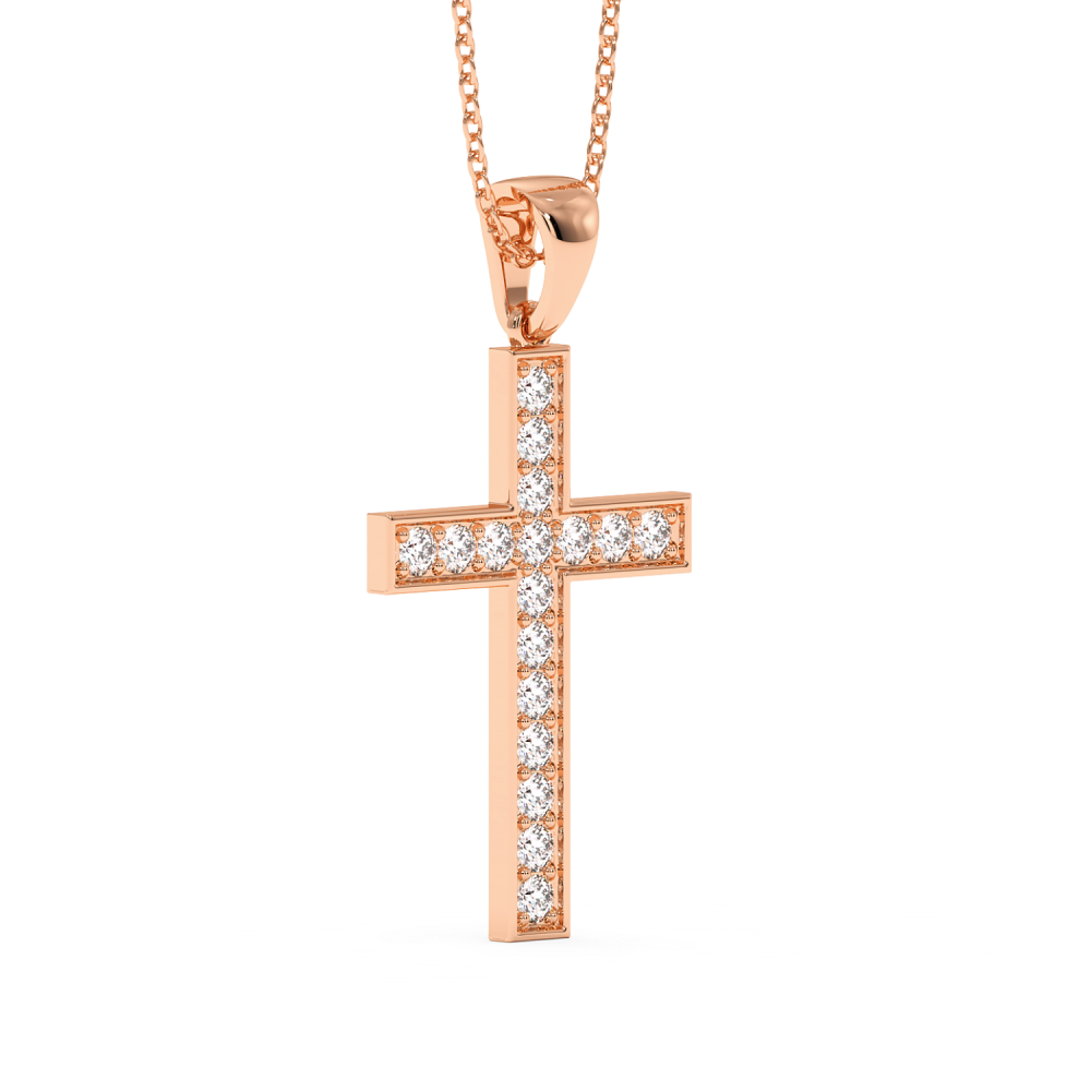 Pandantiv cruciulita din aur de 14 K, cu diamante de 0.59ct. Greutatea cruciulitei este de aproximativ 2.70 grame.