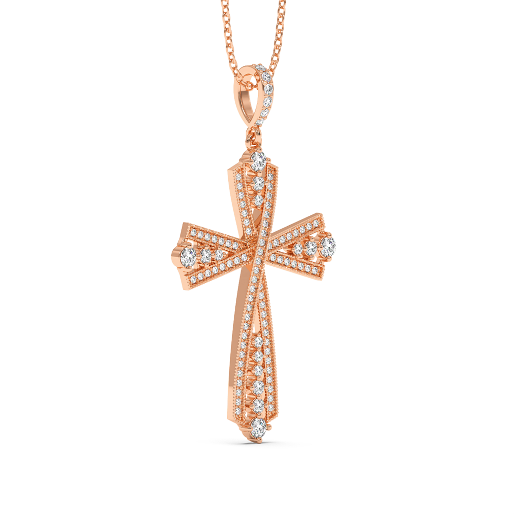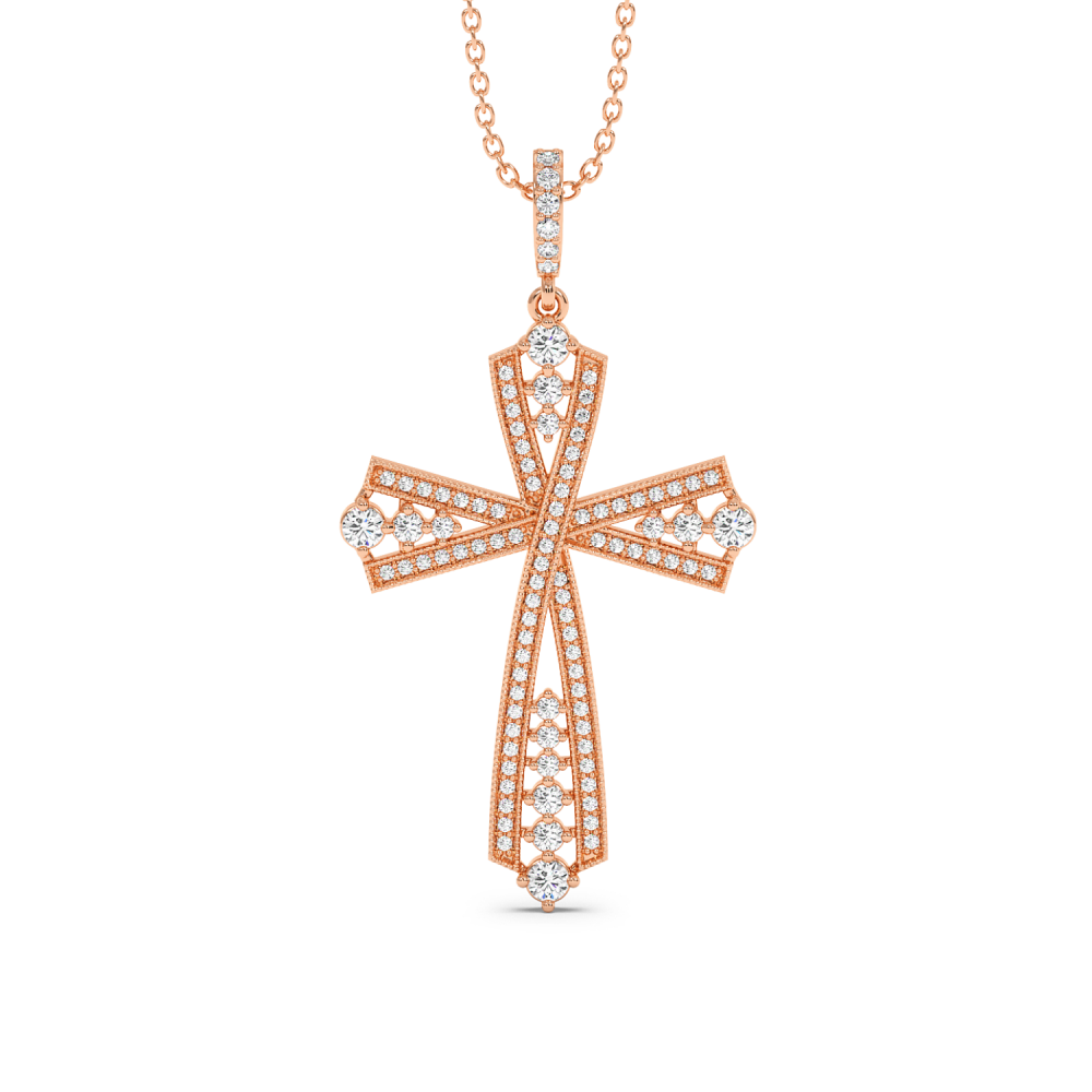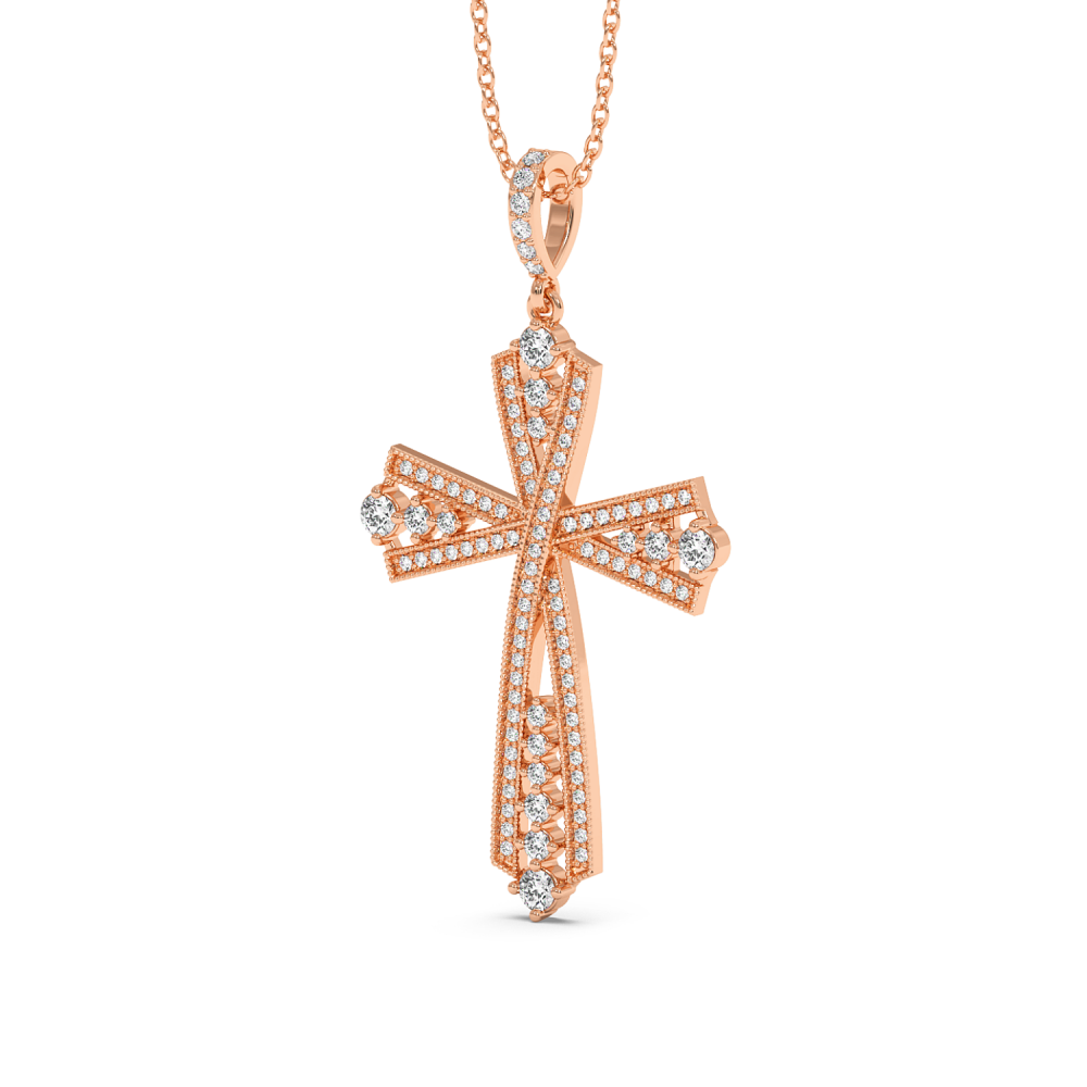 Pandantiv cruciulita din aur de 14 K, cu diamante de 0.61 ct. Greutatea cruciulitei este de aproximativ 5,4 grame.