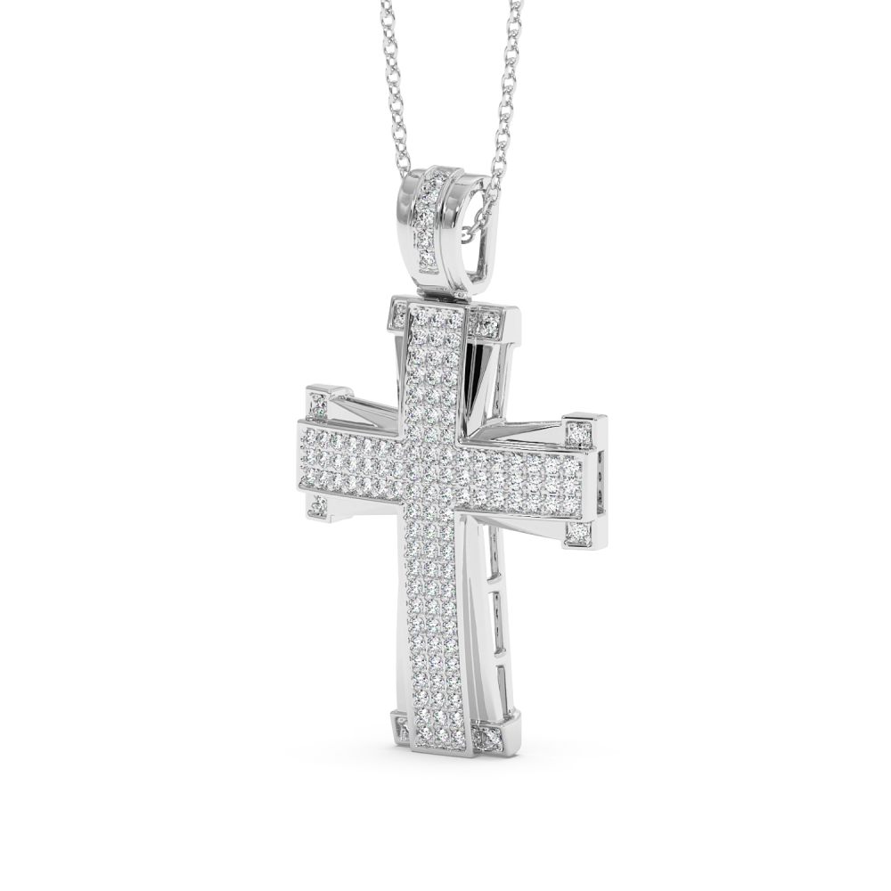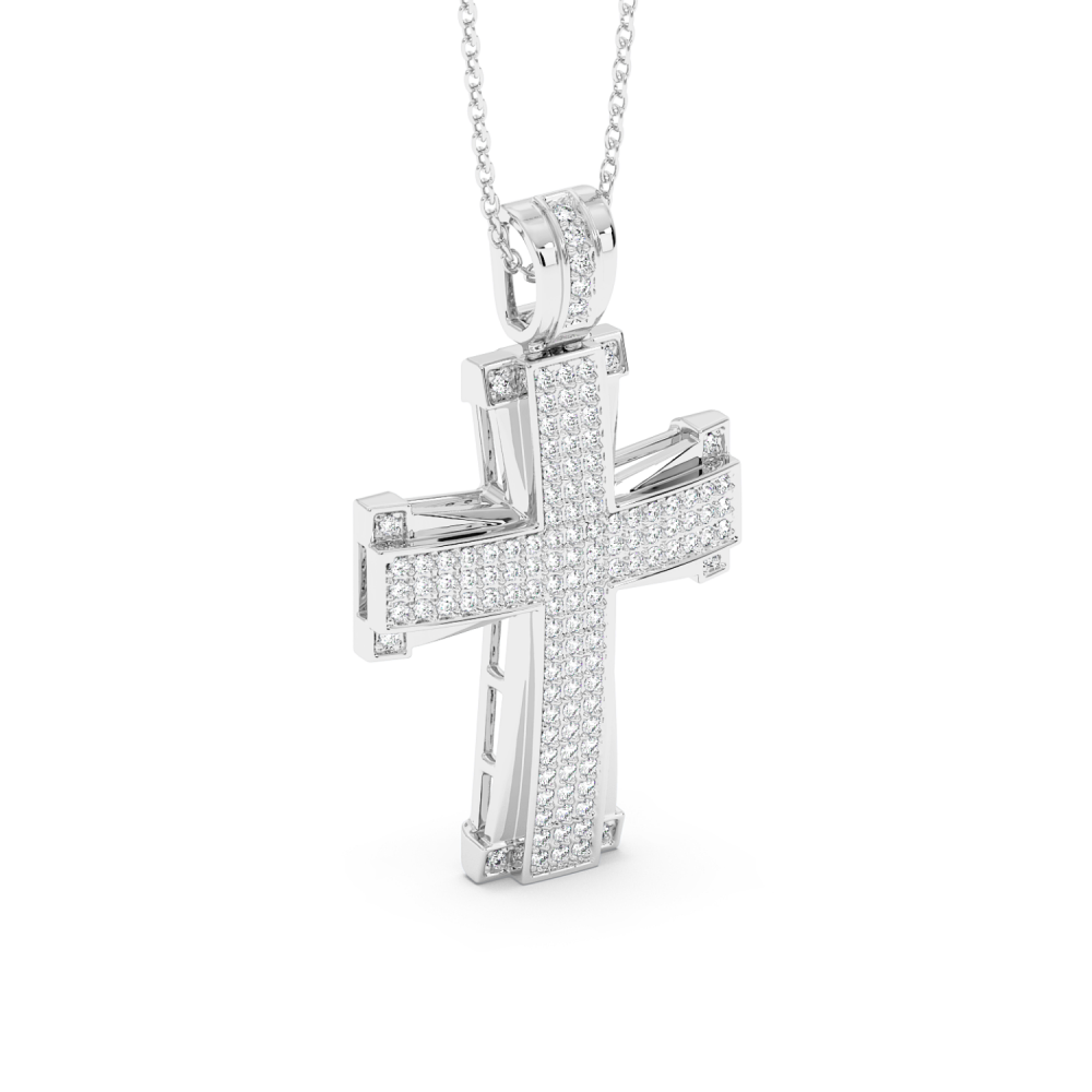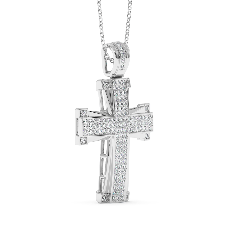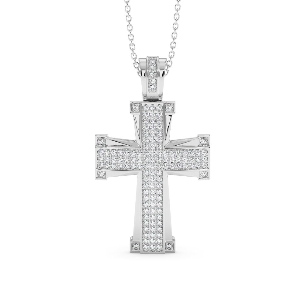 Pandantiv cruciulita din aur alb de 14 K, cu diamante de 0.62ct. Greutatea este de aproximativ 4.94 grame. Lungimea cruciulitei cu tot cu anoul de prindere este de 3.5cm. Pandantivul se poate face pe comanda si din aur de 18K, galben sau rose. Gramajele si caratajele sunt aproximative. Putem modifica designul in functie de bugetul dumneavoastra.