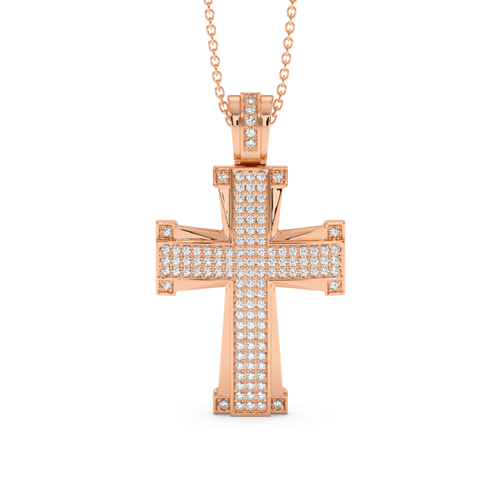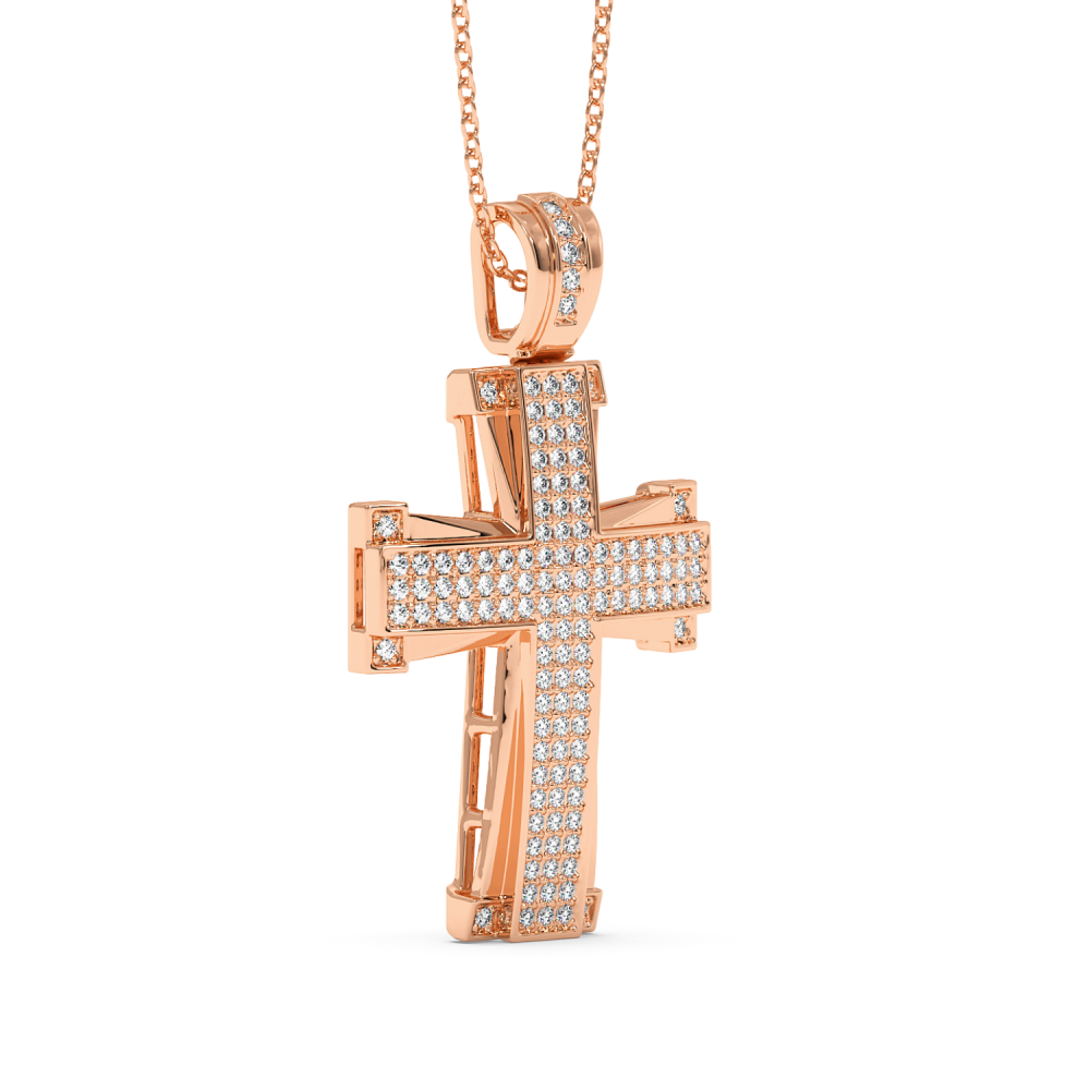 Pandantiv cruciulita din aur alb de 14 K, cu diamante de 0.62ct. Greutatea este de aproximativ 4.94 grame. Lungimea cruciulitei cu tot cu anoul de prindere este de 3.5cm. Pandantivul se poate face pe comanda si din aur de 18K, galben sau rose. Gramajele si caratajele sunt aproximative. Putem modifica designul in functie de bugetul dumneavoastra.