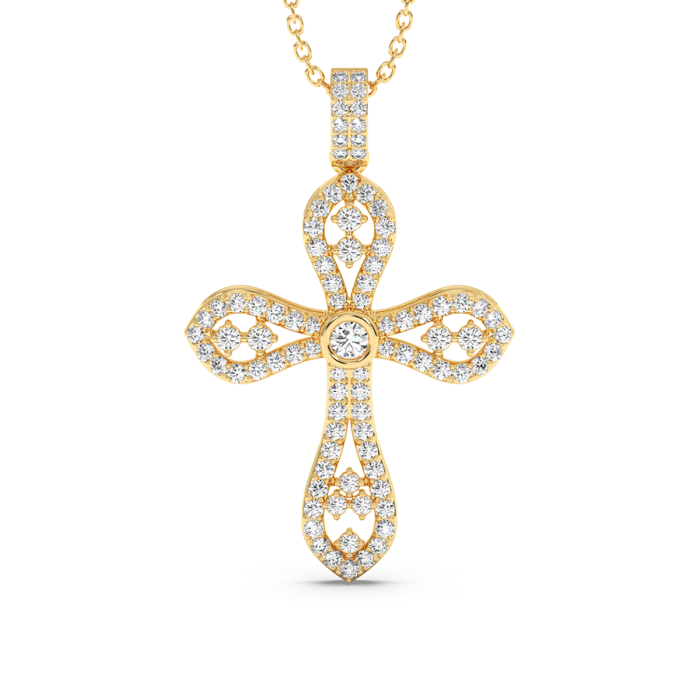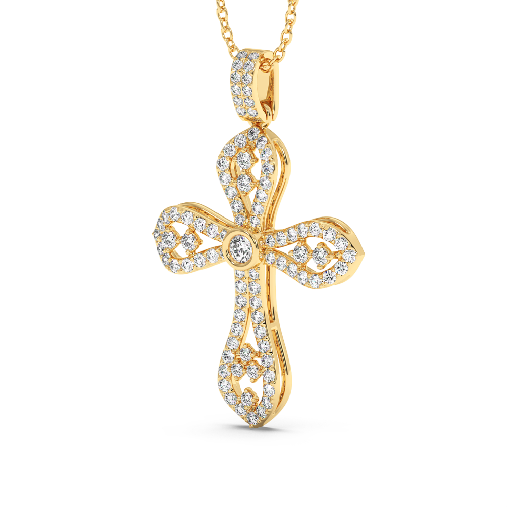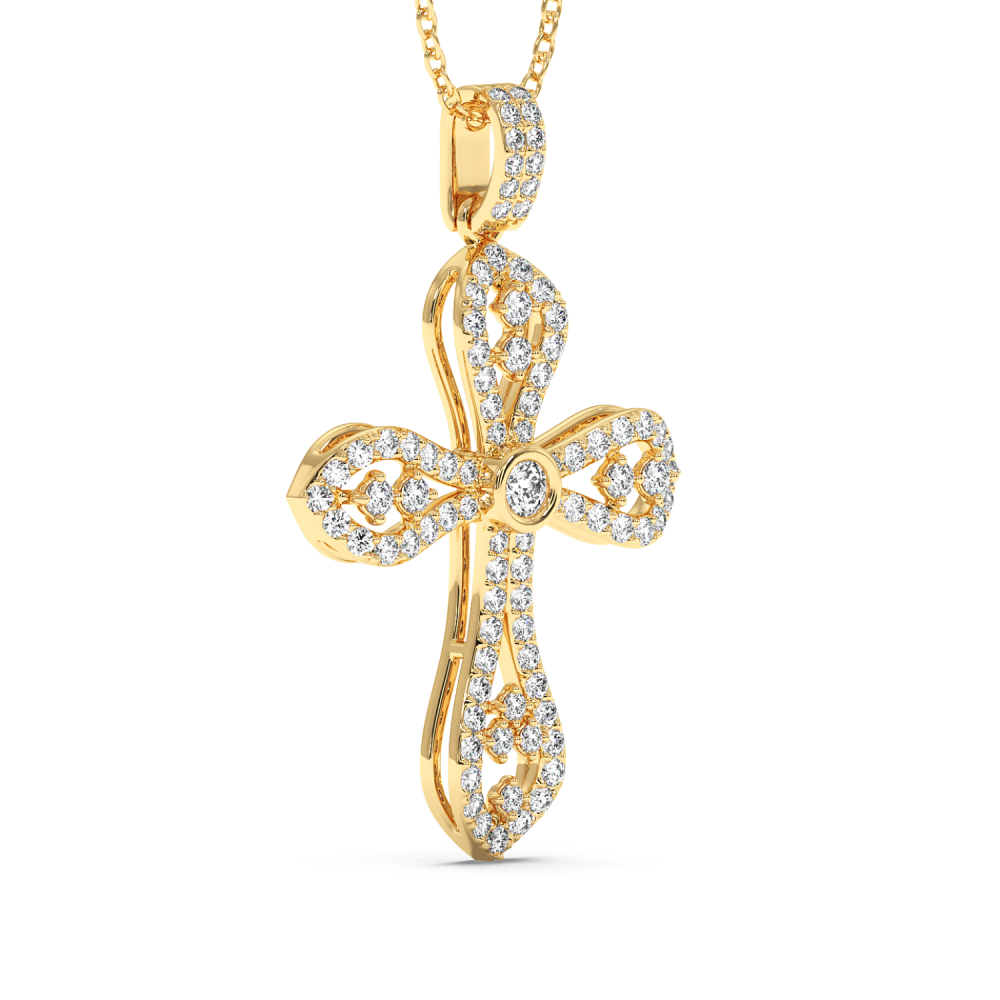Pandantiv cruciulita din aur de 14 K, cu diamante de 0.64ct. Greutatea cruciulitei este de aproximativ 2.70 grame.
