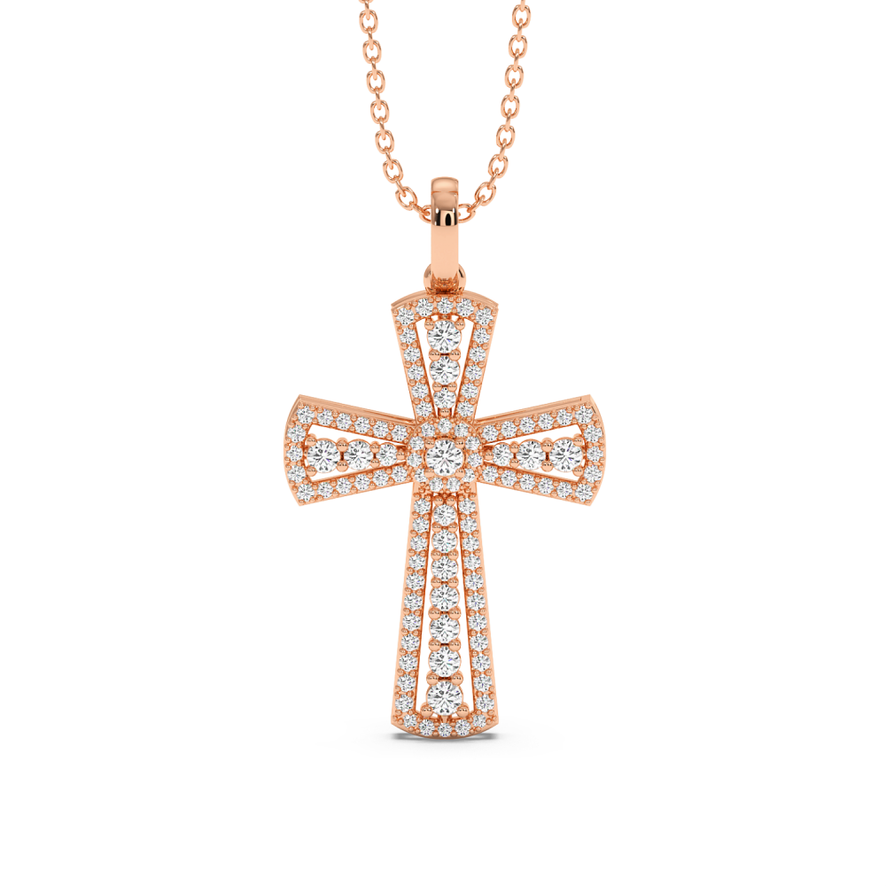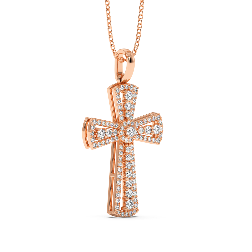 Pandantiv cruciulita din aur alb de 14 K, cu diamante de 0.66ct. Greutatea este de aproximativ 3.10 grame. Lungimea cruciulitei cu tot cu anoul de prindere este de 2.51cm. Pandantivul se poate face pe comanda si din aur de 18K, galben sau rose. Gramajele si caratajele sunt aproximative. Putem modifica designul in functie de bugetul dumneavoastra.