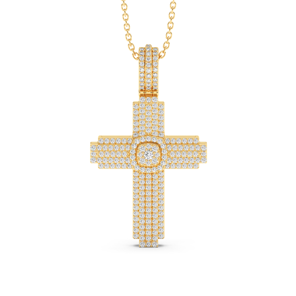 Pandantiv cruciulita din aur de 14 K, cu diamante de 0.67ct. Greutatea cruciulitei este de aproximativ 5.30 grame.