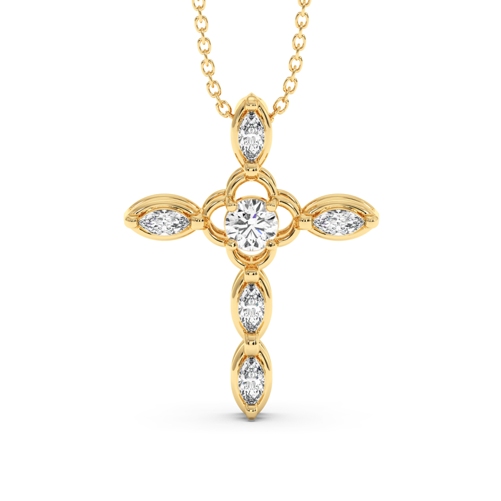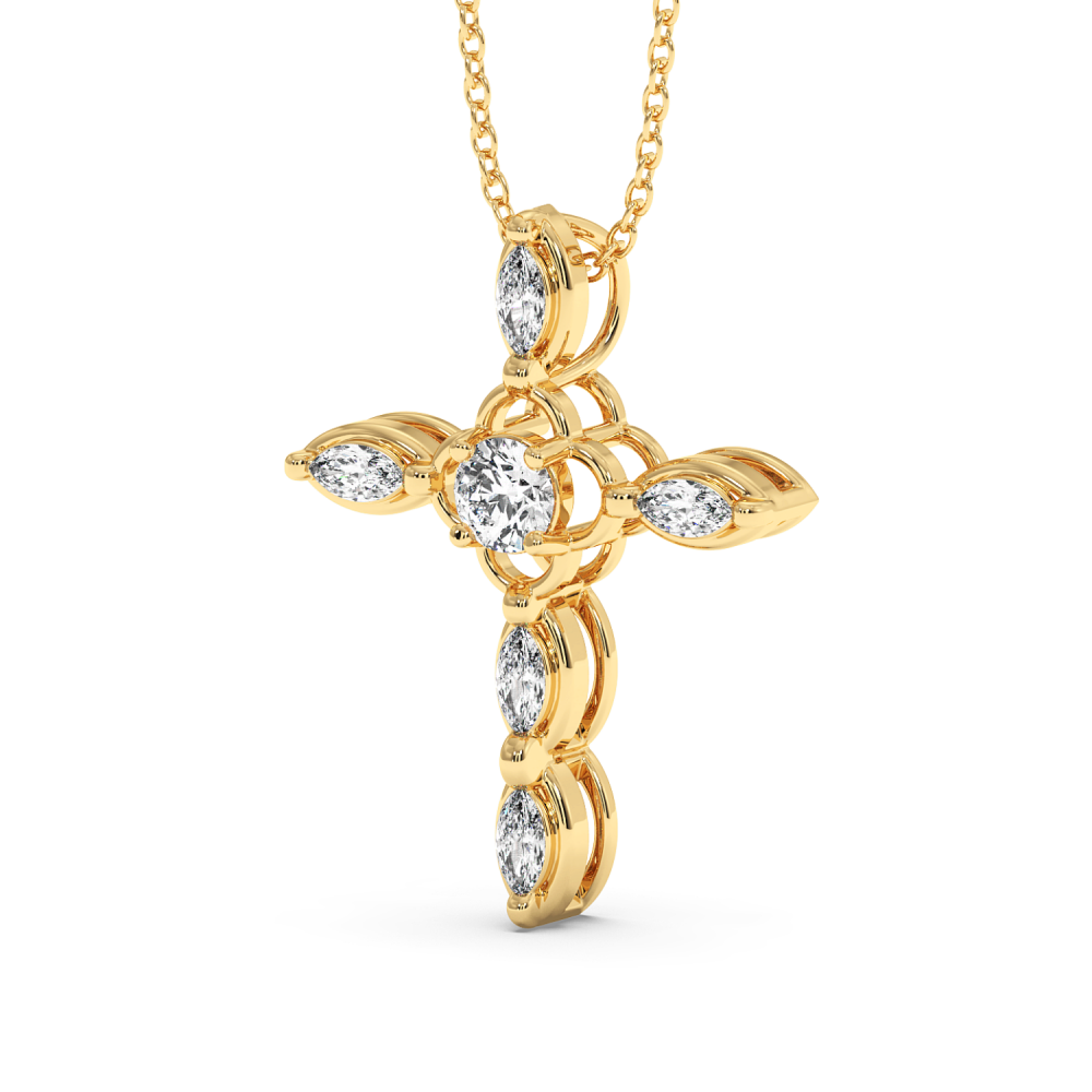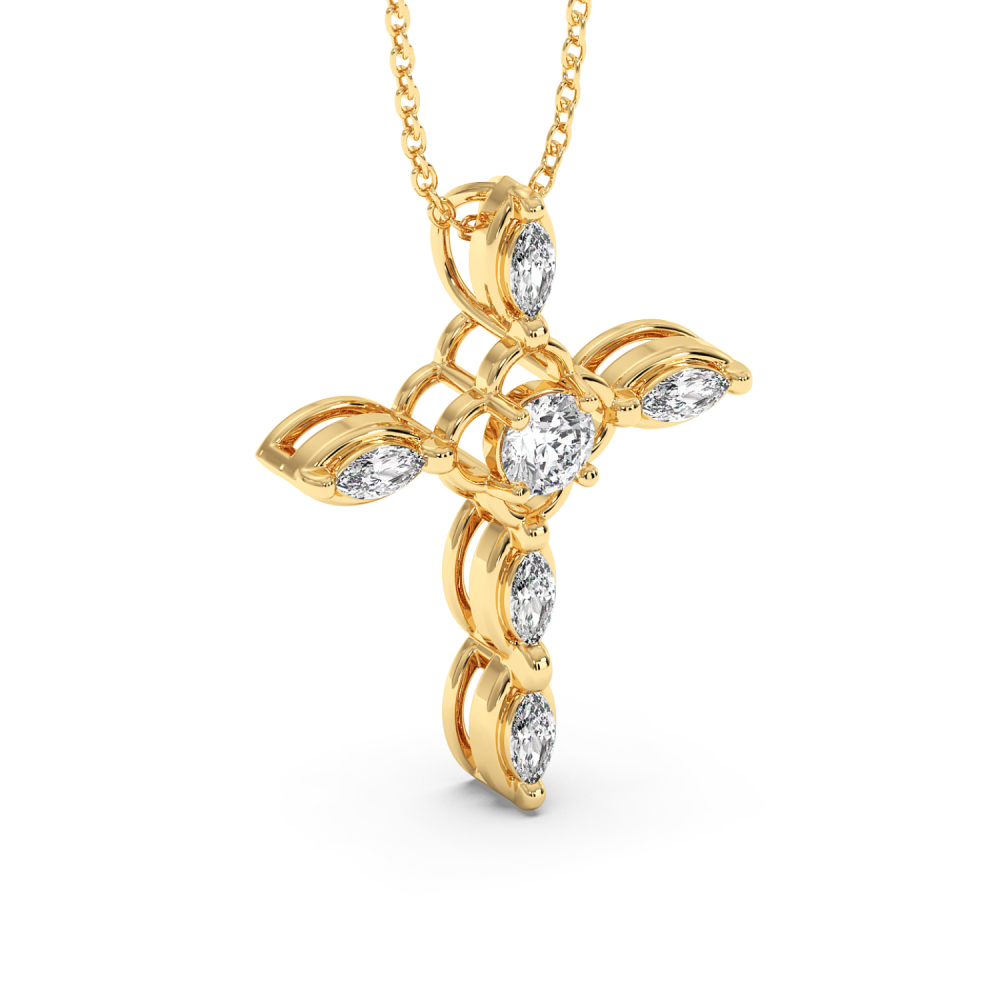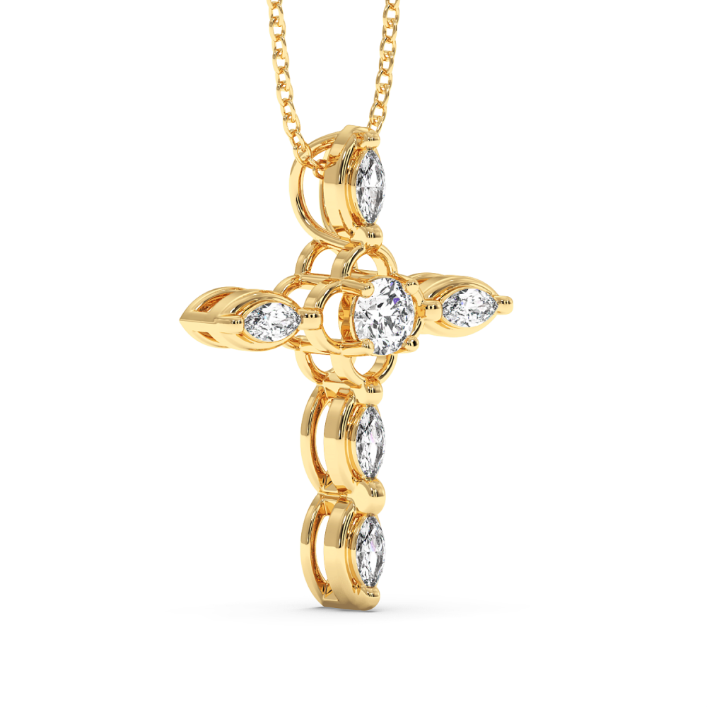 Pandantiv cruciulita din aur de 14 K, cu diamante de 0.69ct. Greutatea cruciulitei este de aproximativ 4.20 grame.