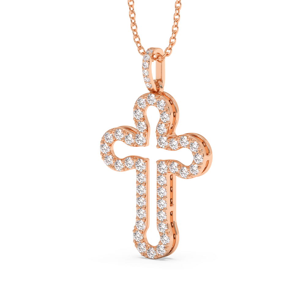 Pandantiv cruciulita din aur de 14 K, cu diamante de 0.71ct. Greutatea cruciulitei este de aproximativ 2.10 grame.