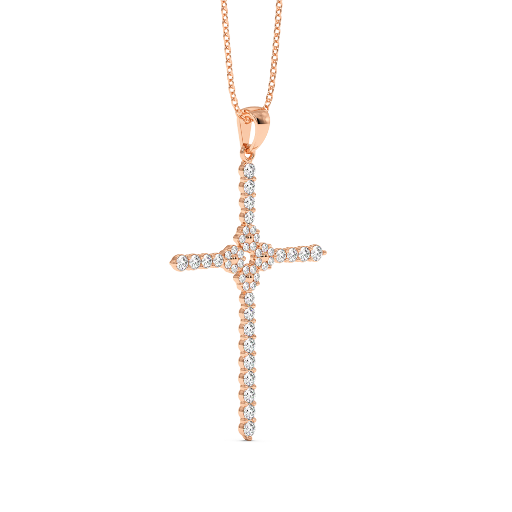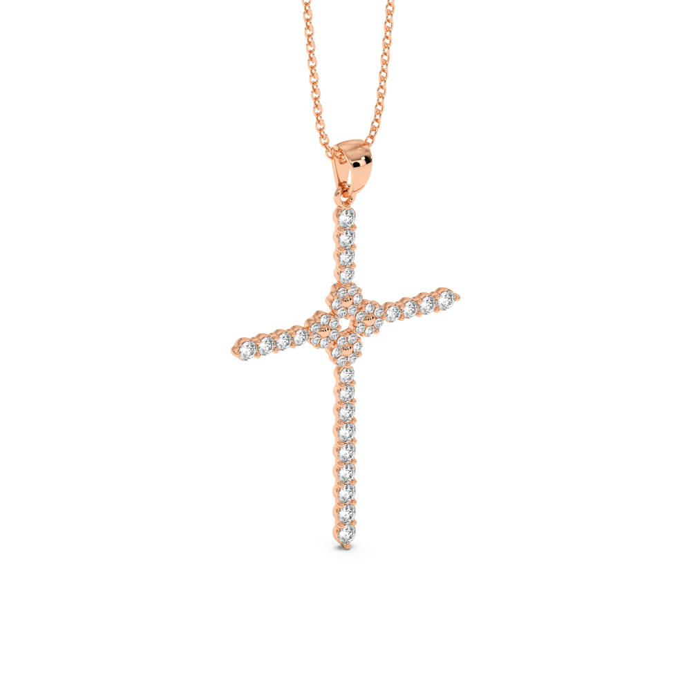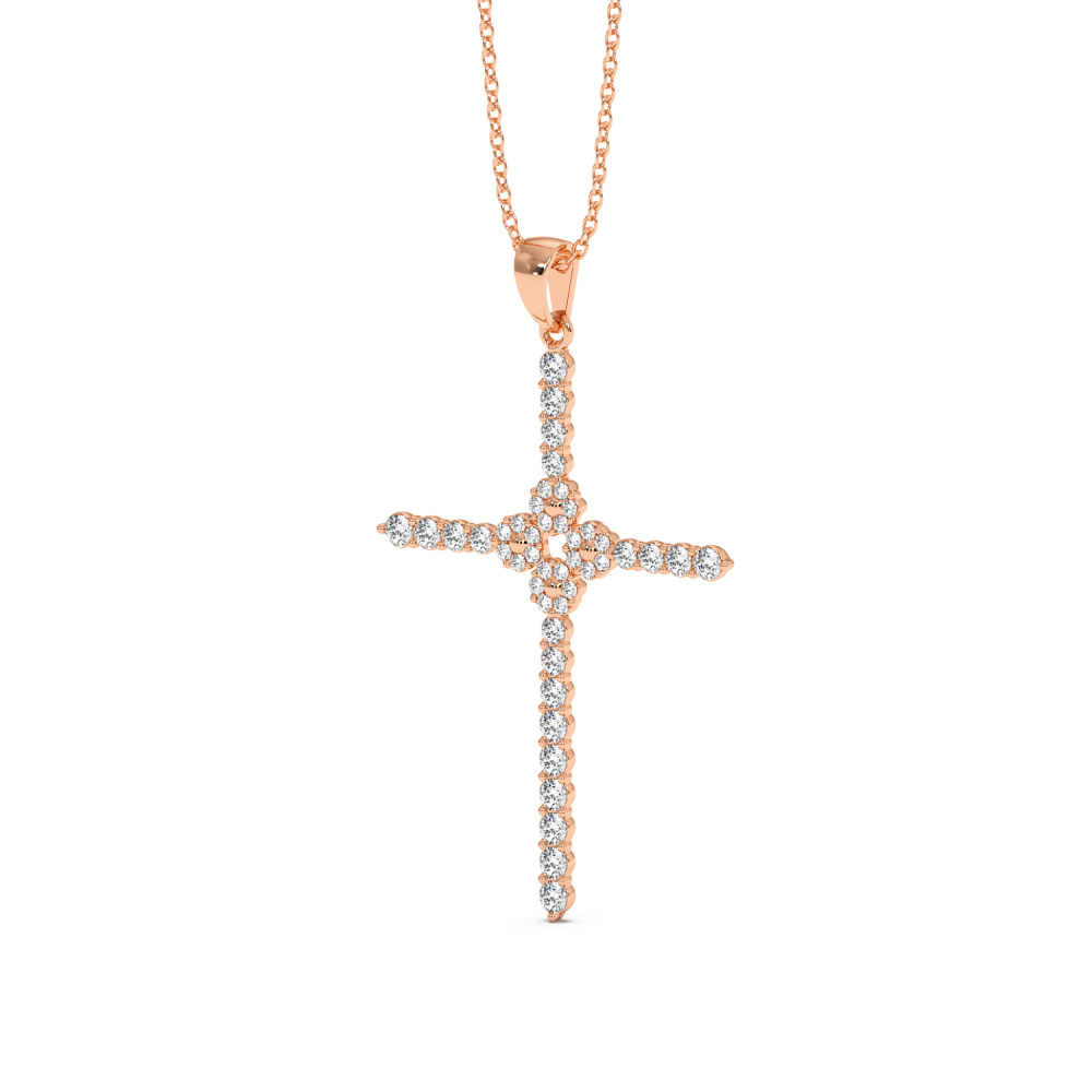 Pandantiv cruciulita din aur alb de 14 K, cu diamante 0.75 ct. Greutatea colierului este de 5.39 grame.