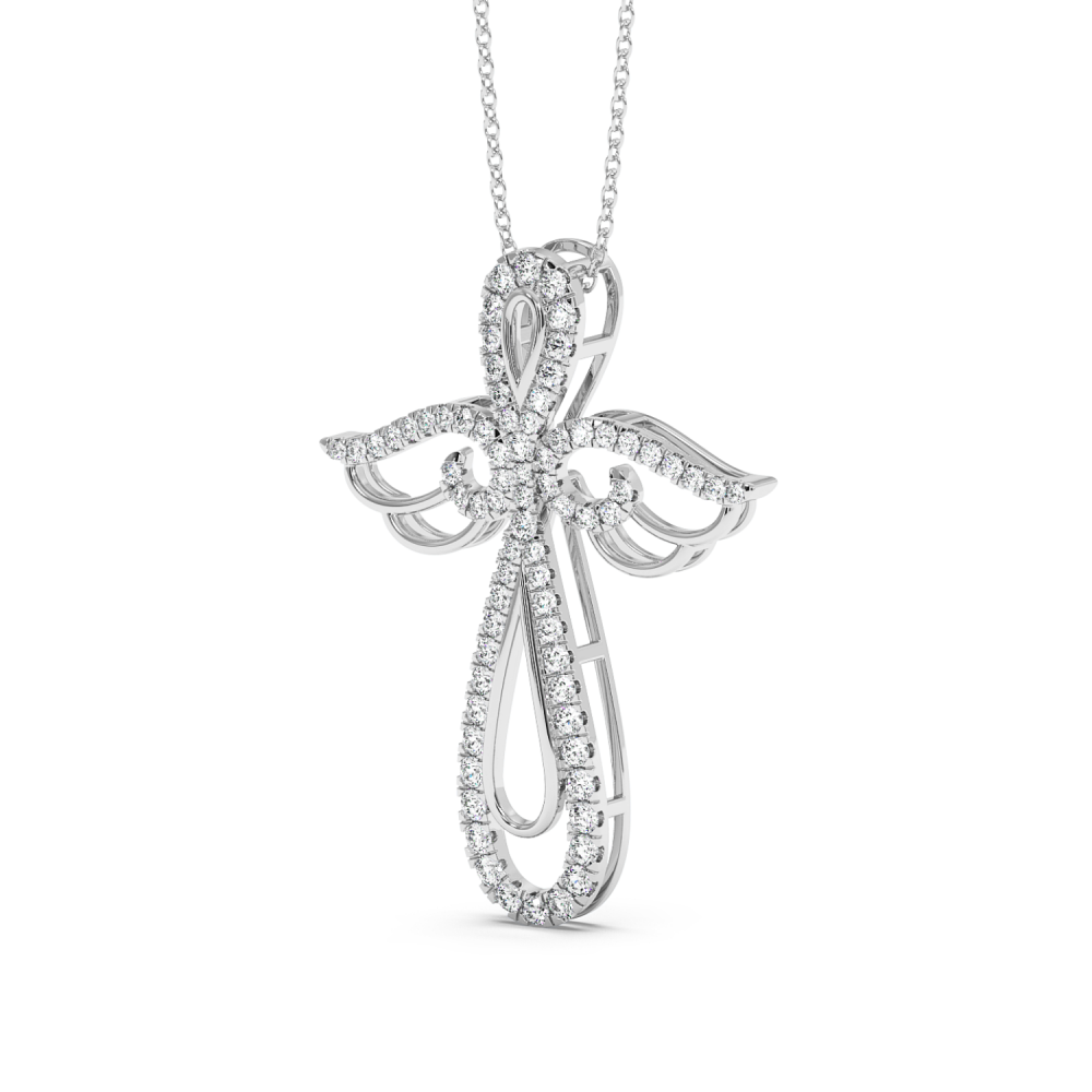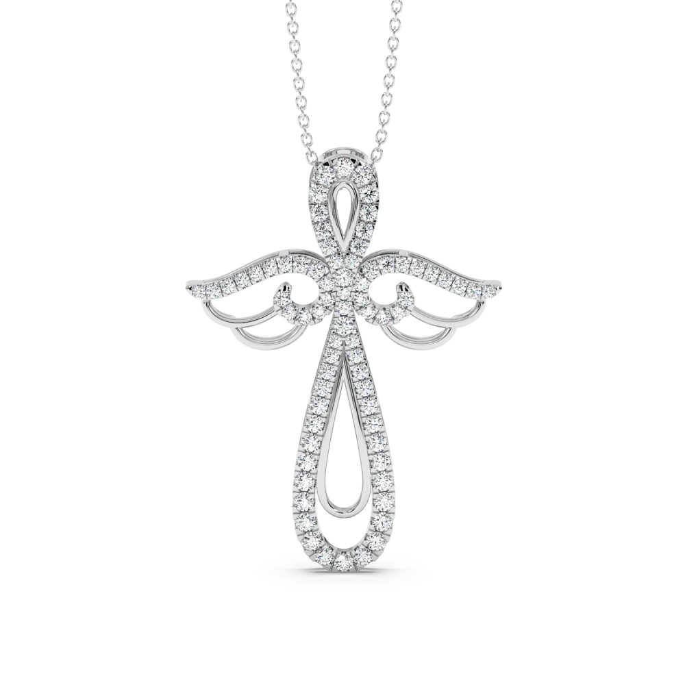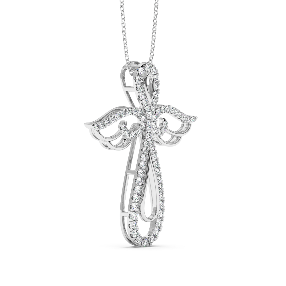 Pandantiv cruciulita din aur alb de 14 K, cu diamante de 0.76ct. Greutatea este de aproximativ 5.27 grame. Lungimea cruciulitei este de 3.78cm. Pandantivul se poate face pe comanda si din aur de 18K, galben sau rose. Gramajele si caratajele sunt aproximative. Putem modifica designul in functie de bugetul dumneavoastra.