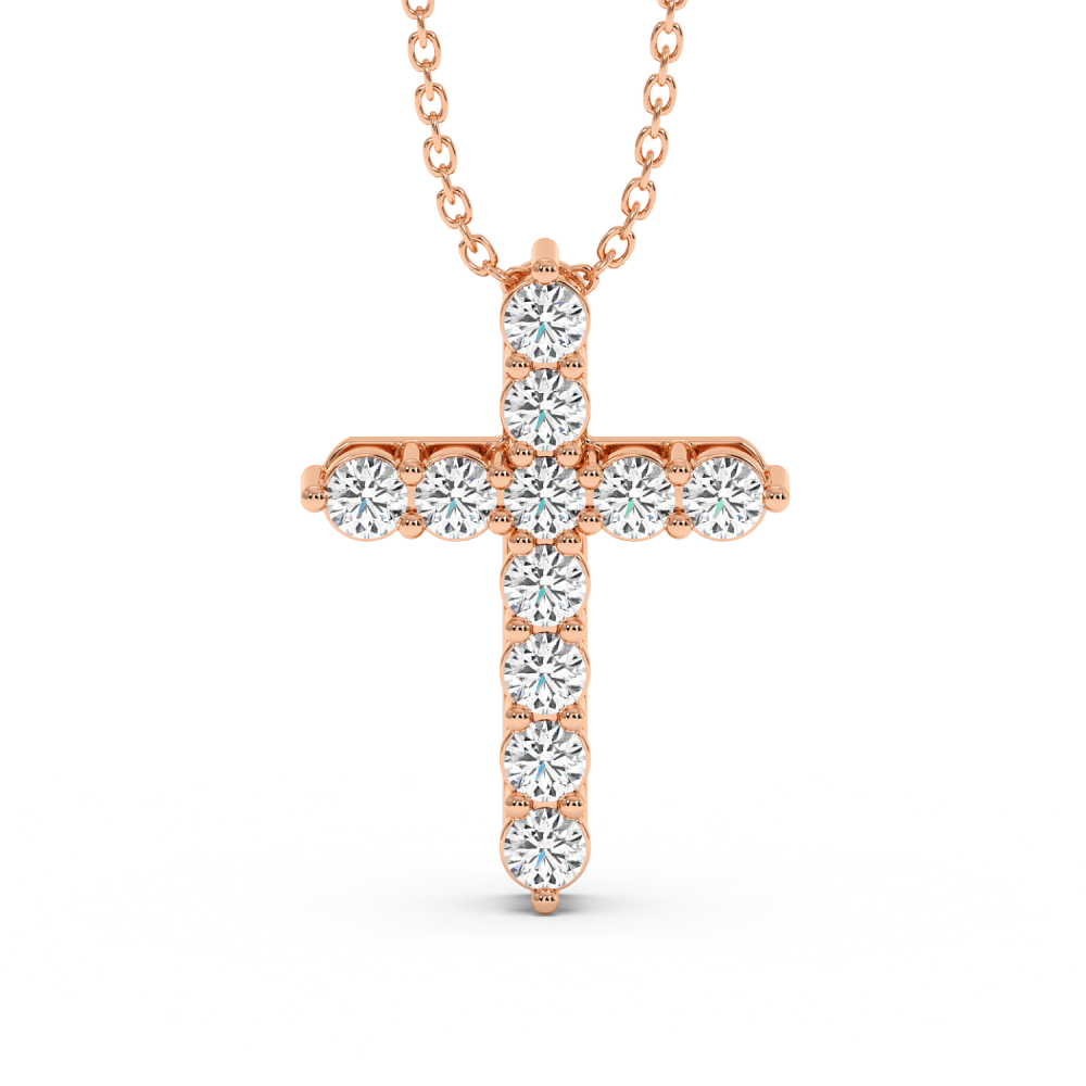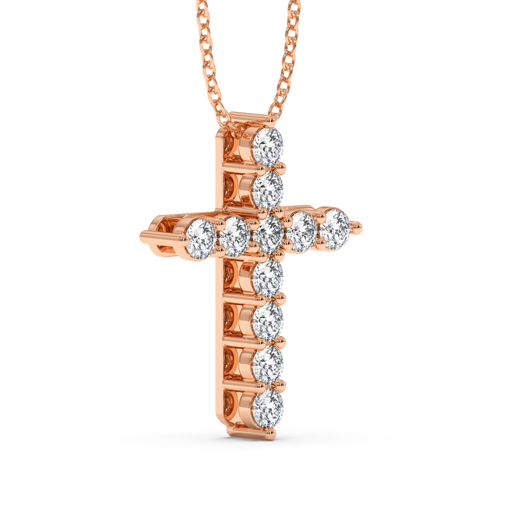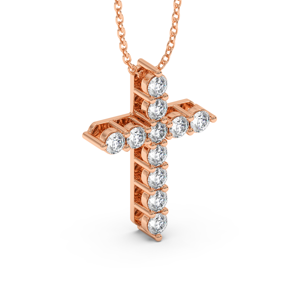 Pandantiv cruciulita din aur de 14 K, cu diamante  de 0.77 ct. Greutatea cruciulitei este de aproximativ 3.50 grame, dimensiunea este de 21mm.