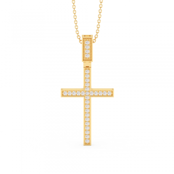 Pandantiv cruciulita din aur de 14 K, cu diamante de 0.78ct. Greutatea cruciulitei este de aproximativ 3 grame. Accesati "SPECIFICATII" pentru mai multe detalii despre acest produs.