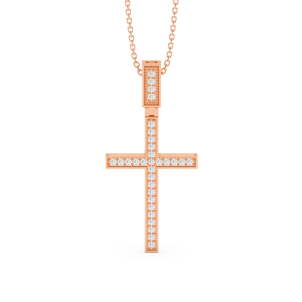 Pandantiv cruciulita din aur de 14 K, cu diamante de 0.78ct. Greutatea cruciulitei este de aproximativ 3 grame.