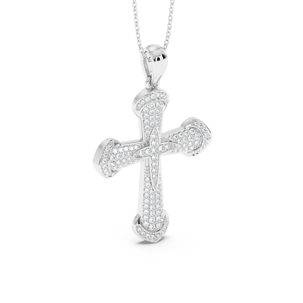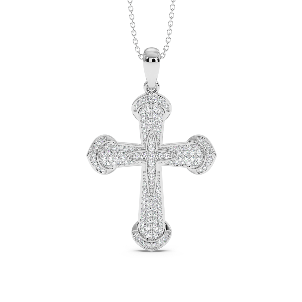 Pandantiv cruciulita din aur alb de 14 K, cu diamante de 0.79ct. Greutatea este de aproximativ 4.59 grame. Lungimea cruciulitei este de 4.20cm. Pandantivul se poate face pe comanda si din aur de 18K, galben sau rose. Gramajele si caratajele sunt aproximative. Putem modifica designul in functie de bugetul dumneavoastra.