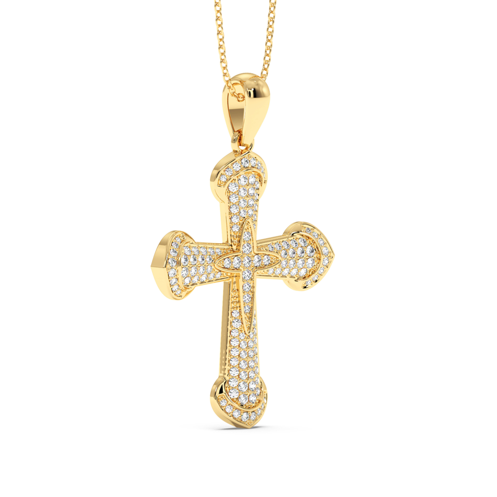 Pandantiv cruciulita din aur alb de 14 K, cu diamante de 0.79ct. Greutatea este de aproximativ 4.59 grame. Lungimea cruciulitei este de 4.20cm. Pandantivul se poate face pe comanda si din aur de 18K, galben sau rose. Gramajele si caratajele sunt aproximative. Putem modifica designul in functie de bugetul dumneavoastra.