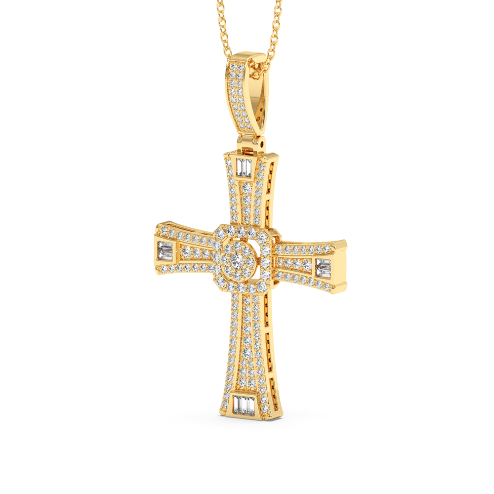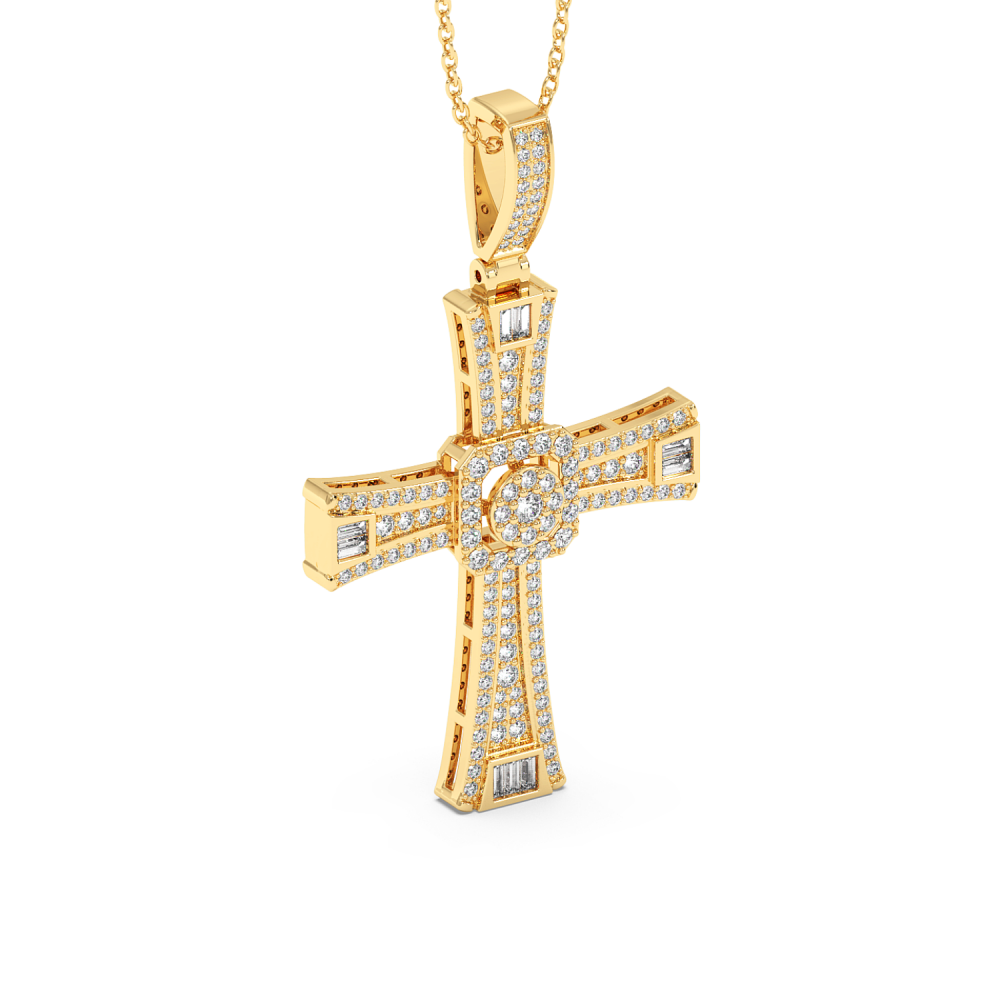 Pandantiv cruciulita din aur de 14 K, cu diamante de 0.89ct. Greutatea cruciulitei este de aproximativ 6.50 grame.