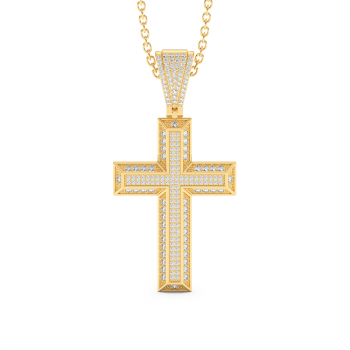 Pandantiv cruciulita din aur de 14 K, cu diamante de 0.95ct. Greutatea cruciulitei este de aproximativ 6.70 grame. Accesati  "SPECIFICATII" pentru mai multe detalii despre acest produs.