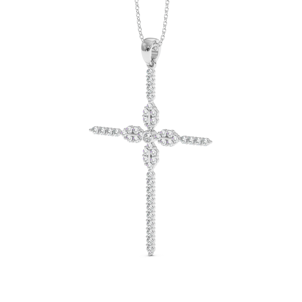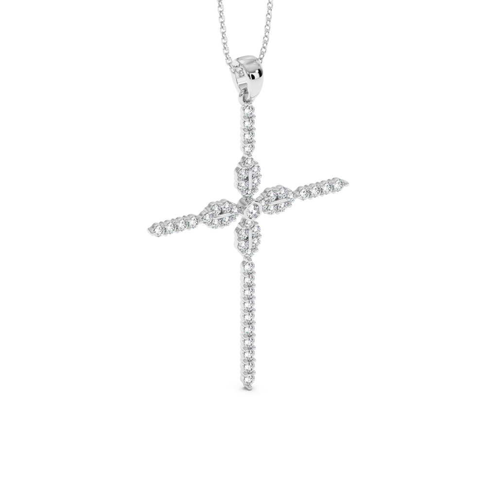 Pandantiv cruciulita din aur alb de 14 K, cu diamante 1.10 ct. Greutatea colierului este de 6.22 grame.