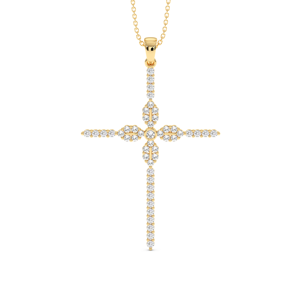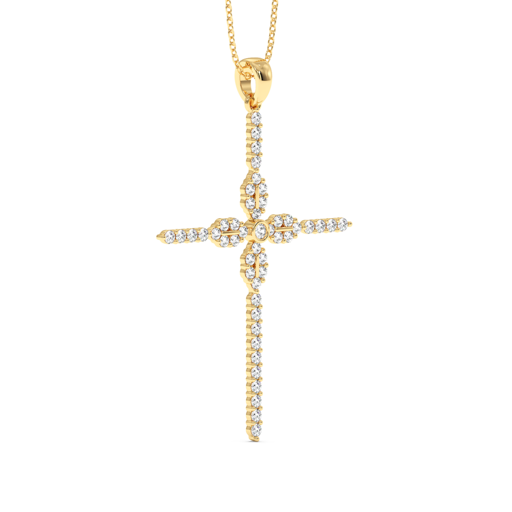 Pandantiv cruciulita din aur alb de 14 K, cu diamante 1.10 ct. Greutatea colierului este de 6.22 grame.