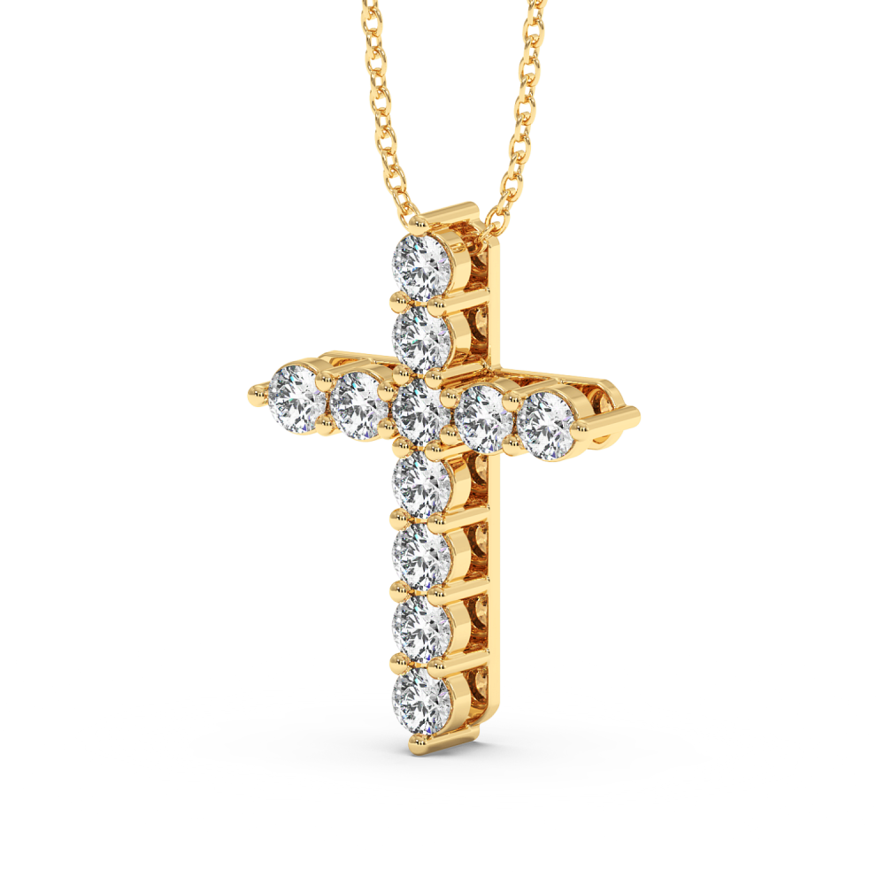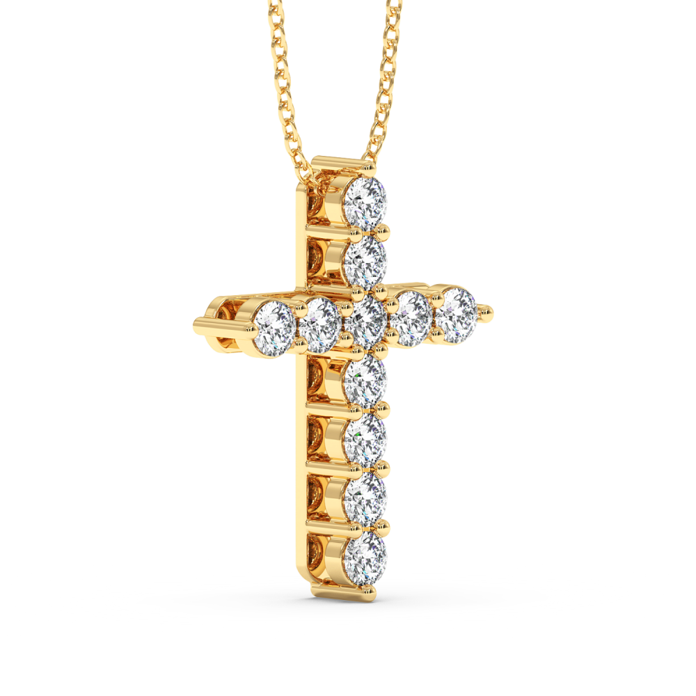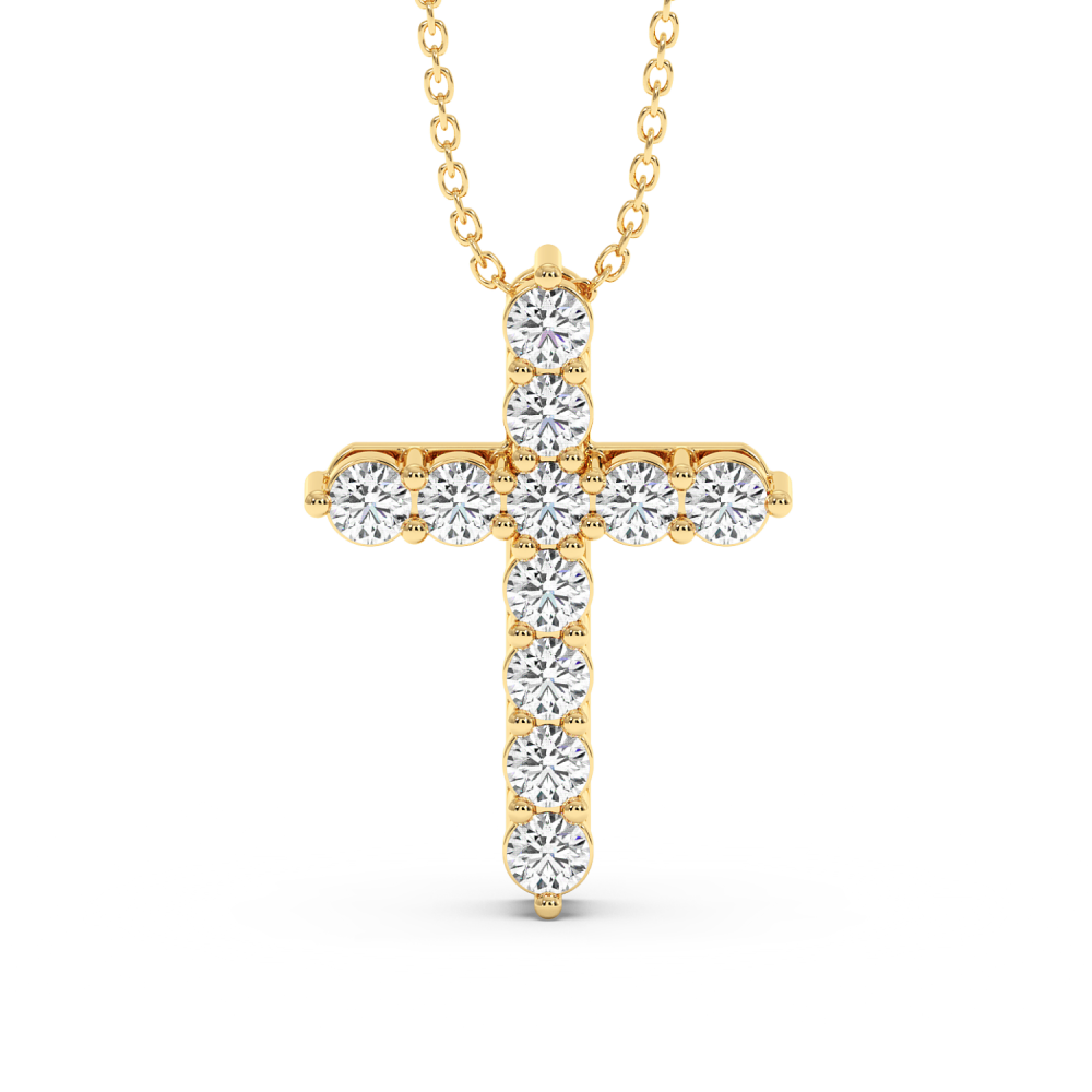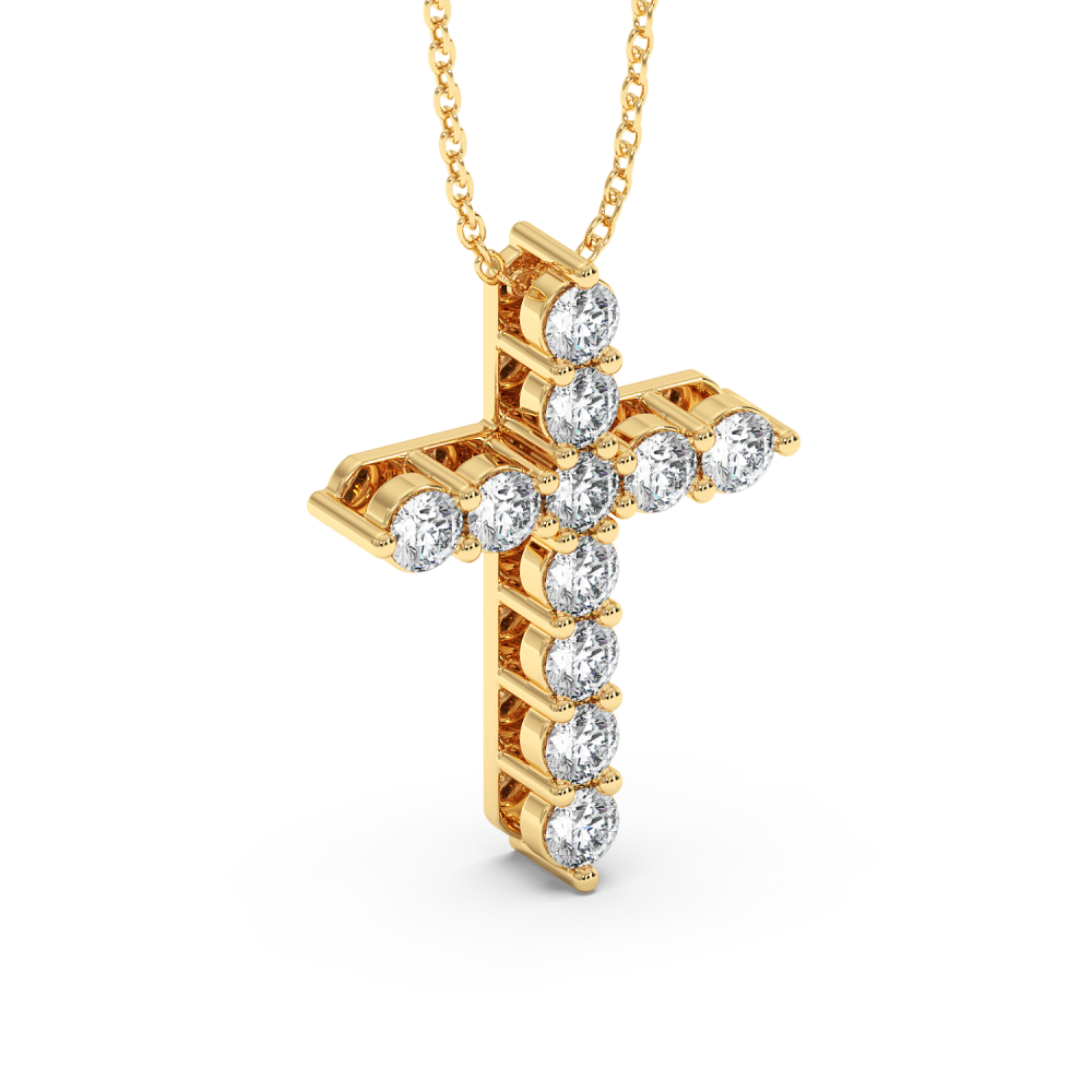 Pandantiv cruciulita din aur de 14 K, cu diamante de 1.10 ct. Greutatea cruciulitei este de aproximativ 6.00 grame, dimensiunea este de 23mm.