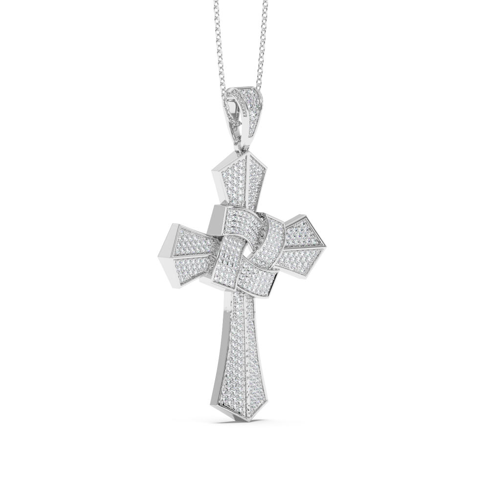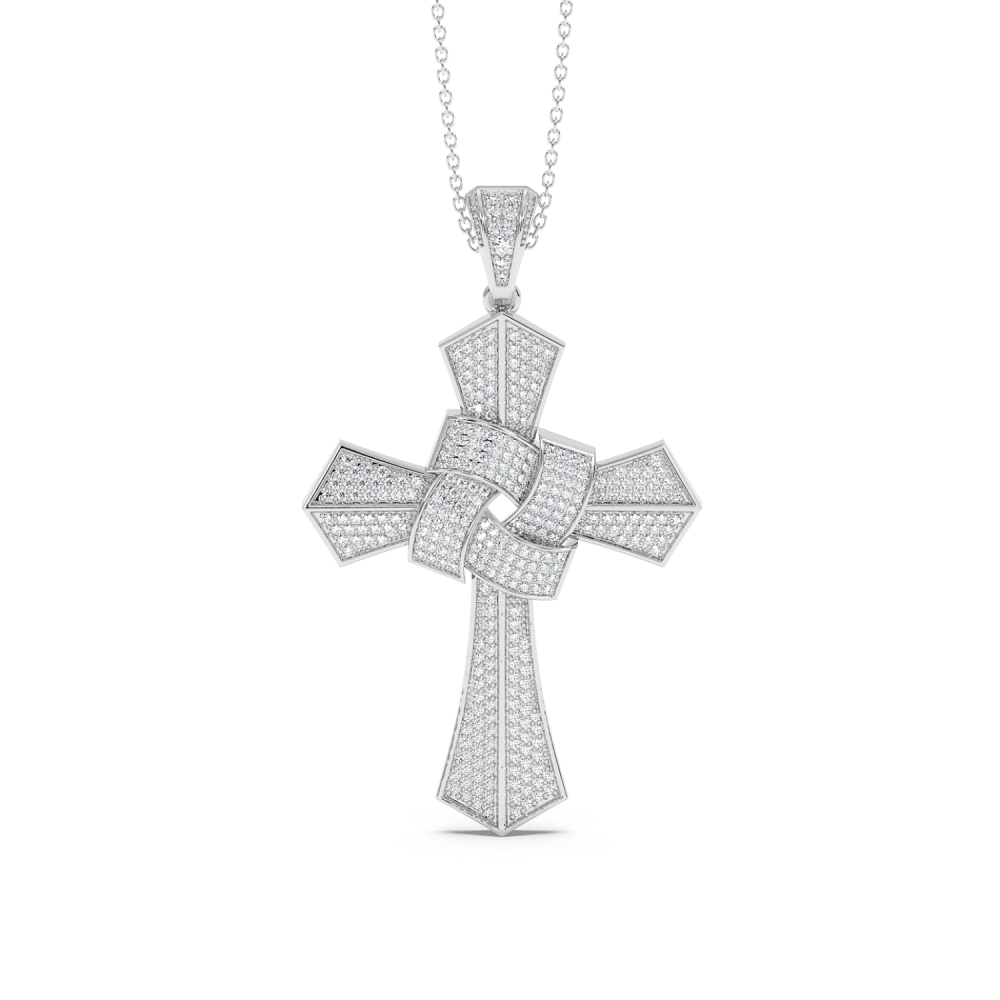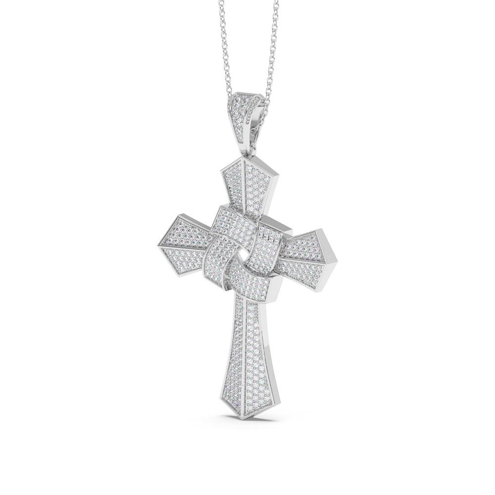 Pandantiv cruciulita din aur alb de 14 K, cu diamante 1.19ct. Greutatea este de aproximativ 8.34 grame. Lungimea cruciulitei cu tot cu anoul de prindere este de 5.15cm. Pandantivul se poate face pe comanda si din aur de 18K, galben sau rose. Gramajele si caratajele sunt aproximative. Putem modifica designul in functie de bugetul dumneavoastra.
