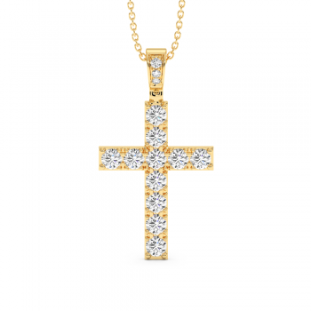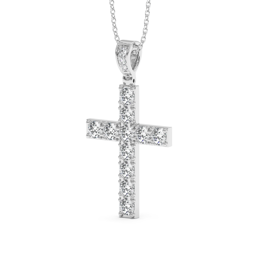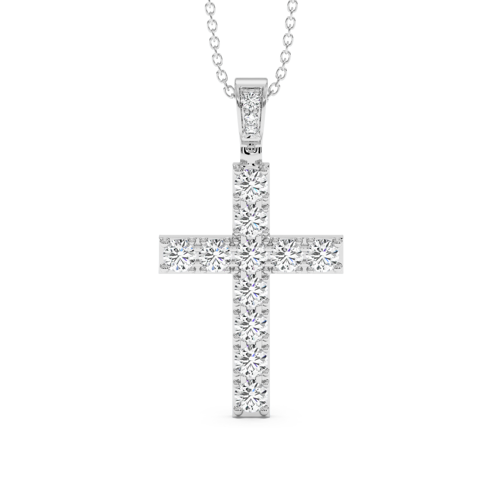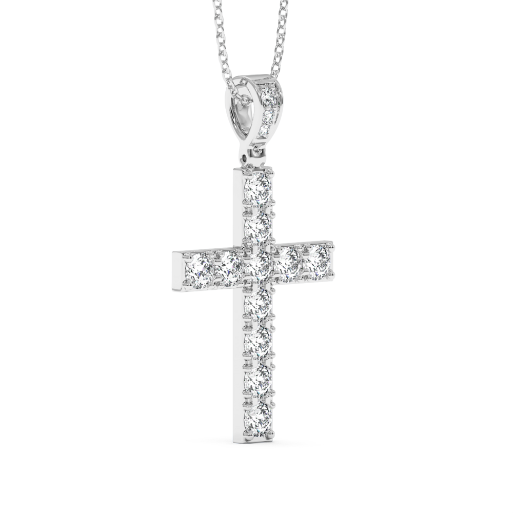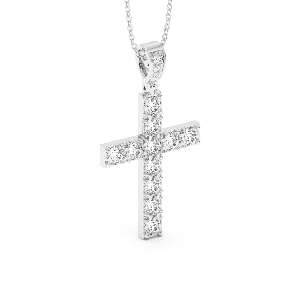 Pandantiv cruciulita din aur alb de 14 K, cu diamante de 1.28ct. Greutatea este de aproximativ 2.83 grame. Lungimea cruciulitei este de 2.61cm. Pandantivul se poate face pe comanda si din aur de 18K, galben sau rose. Gramajele si caratajele sunt aproximative. Putem modifica designul in functie de bugetul dumneavoastra.