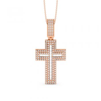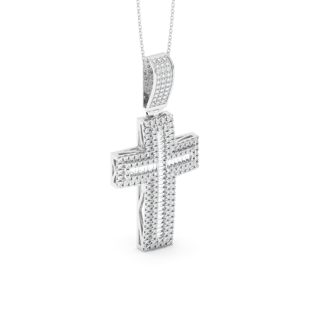 Pandantiv cruciulita din aur alb de 14 K, cu diamante de 2.10ct. Greutatea este de aproximativ 7.26 grame. Lungimea cruciulitei este de 3.58cm. Pandantivul se poate face pe comanda si din aur de 18K, galben sau rose. Gramajele si caratajele sunt aproximative. Putem modifica designul in functie de bugetul dumneavoastra.