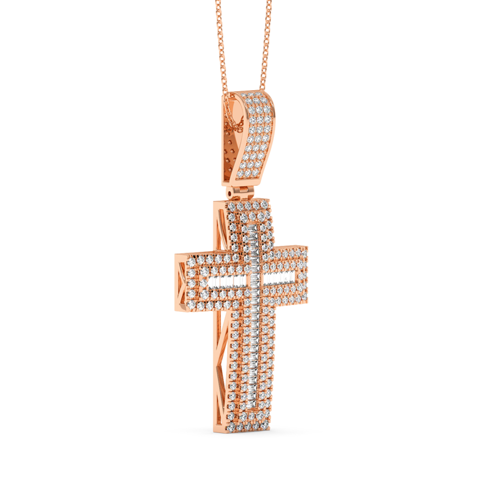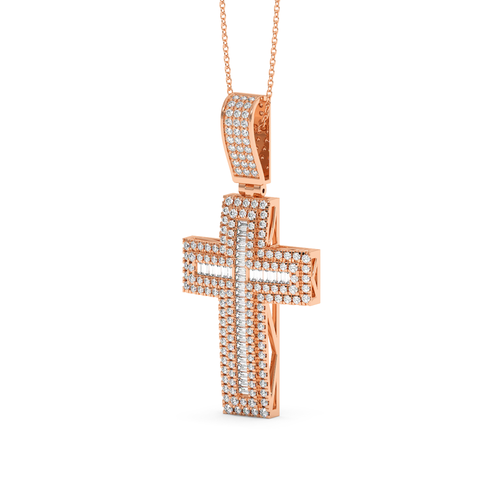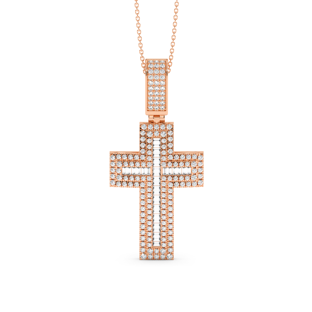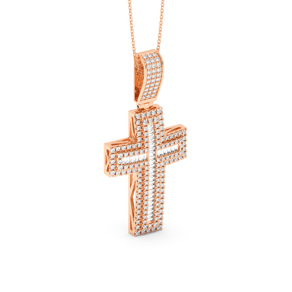 Pandantiv cruciulita din aur alb de 14 K, cu diamante de 2.10ct. Greutatea este de aproximativ 7.26 grame. Lungimea cruciulitei este de 3.58cm. Pandantivul se poate face pe comanda si din aur de 18K, galben sau rose. Gramajele si caratajele sunt aproximative. Putem modifica designul in functie de bugetul dumneavoastra.
