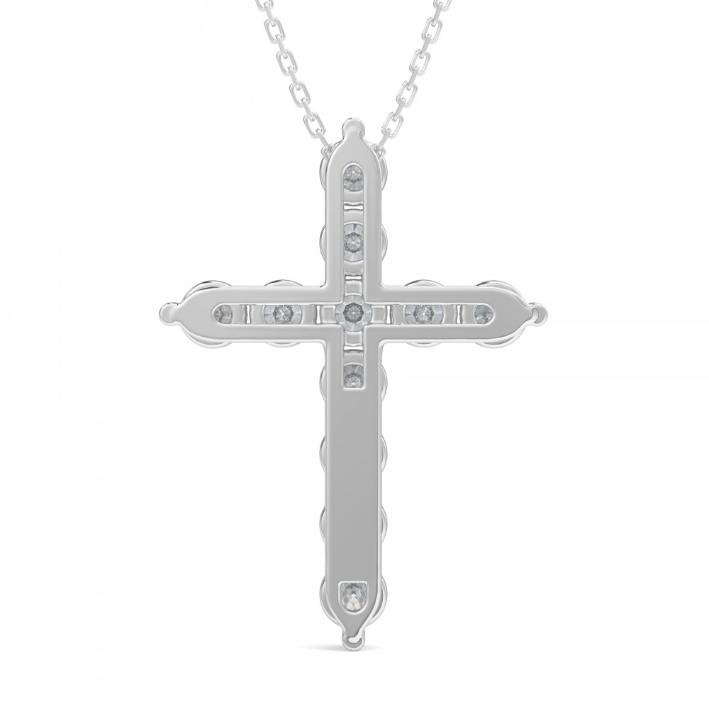 Pandantiv cruciulita din aur alb de 14 K, cu diamante de 2.29 ct. Greutatea colierului este de 8.11 grame.