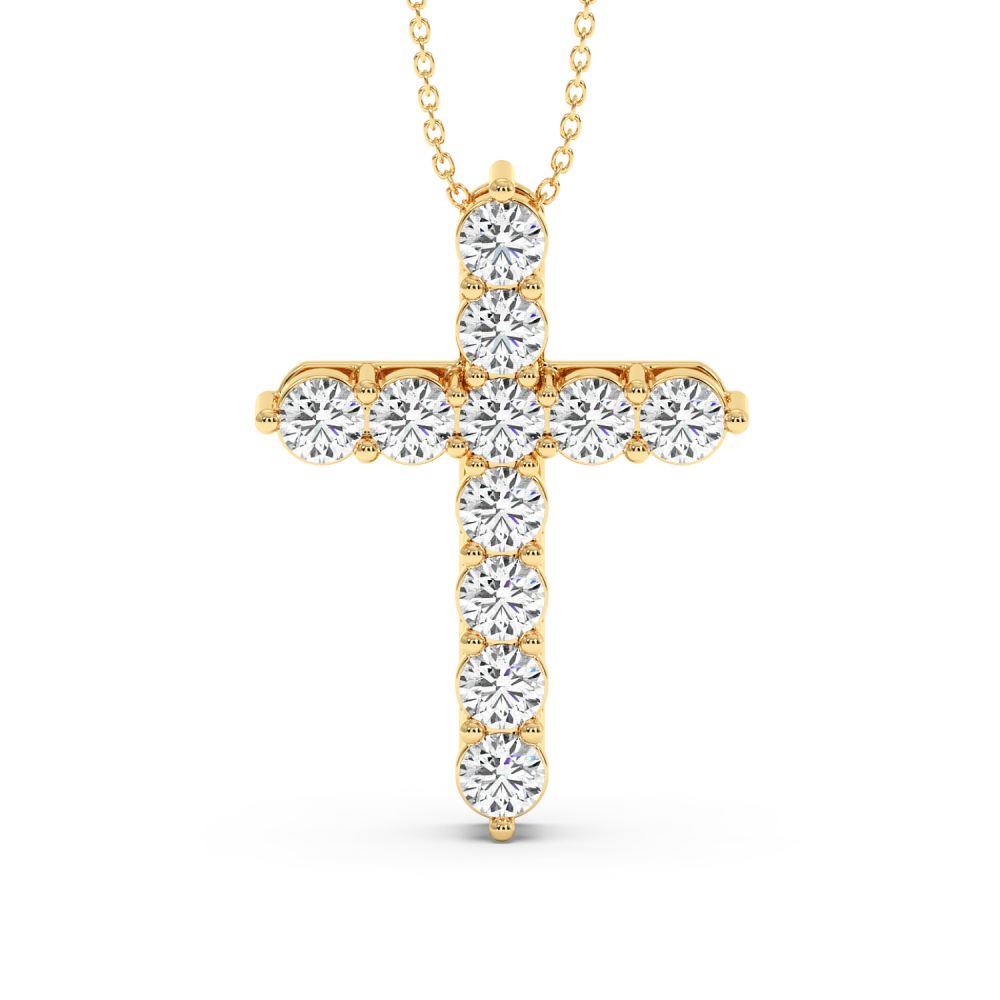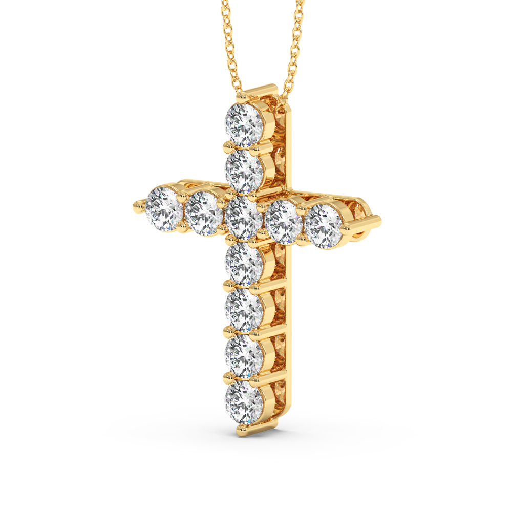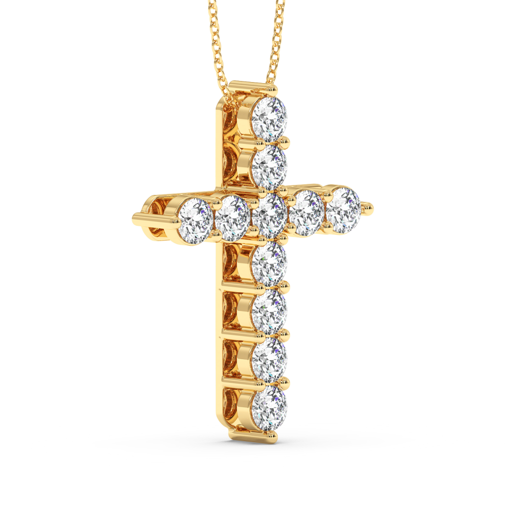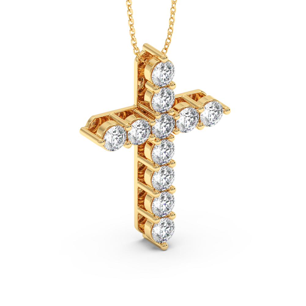 Pandantiv cruciulita din aur de 14 K, cu diamante de 3.40 ct. Greutatea cruciulitei este de aproximativ 9.50 grame, dimensiunea este de 33mm.